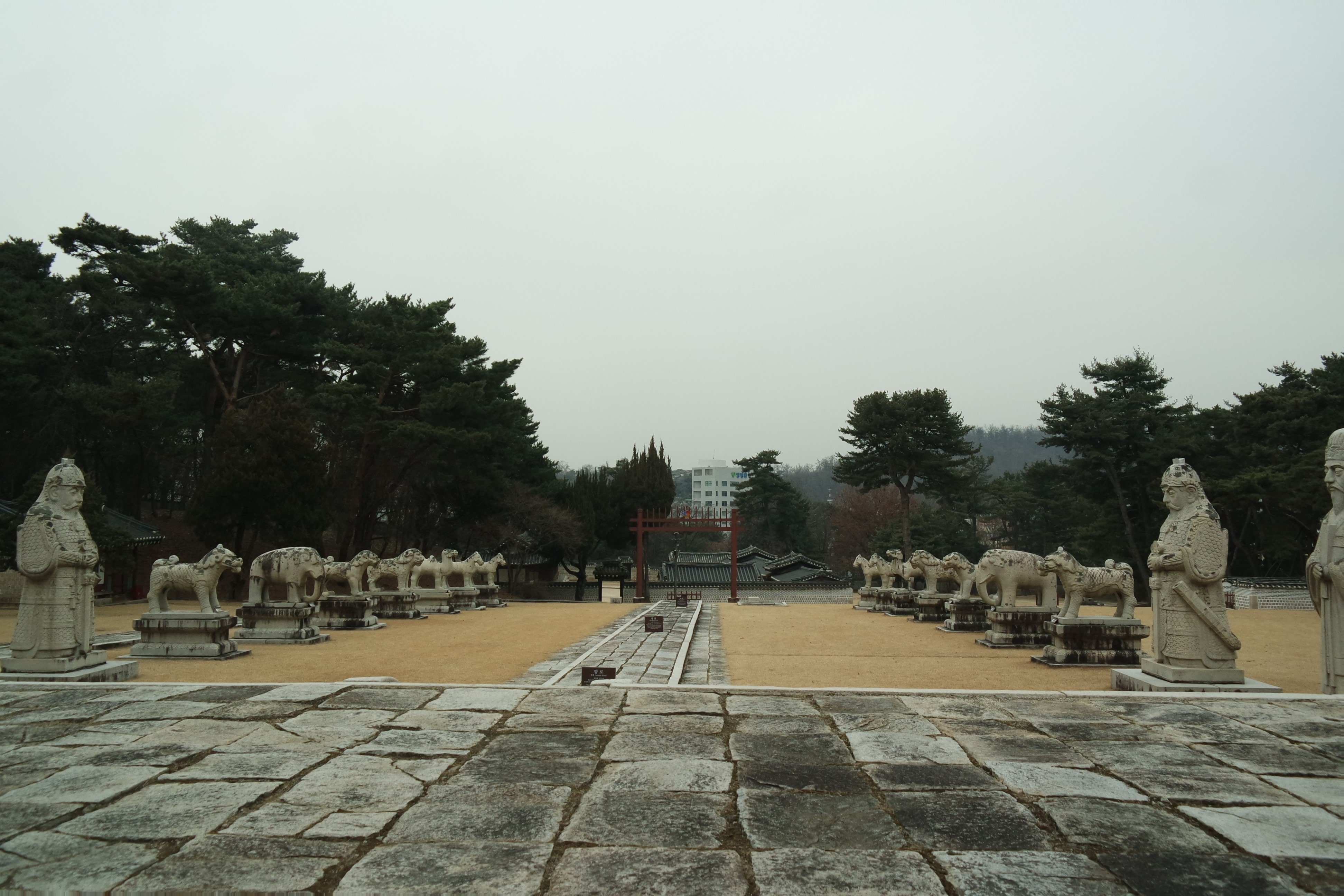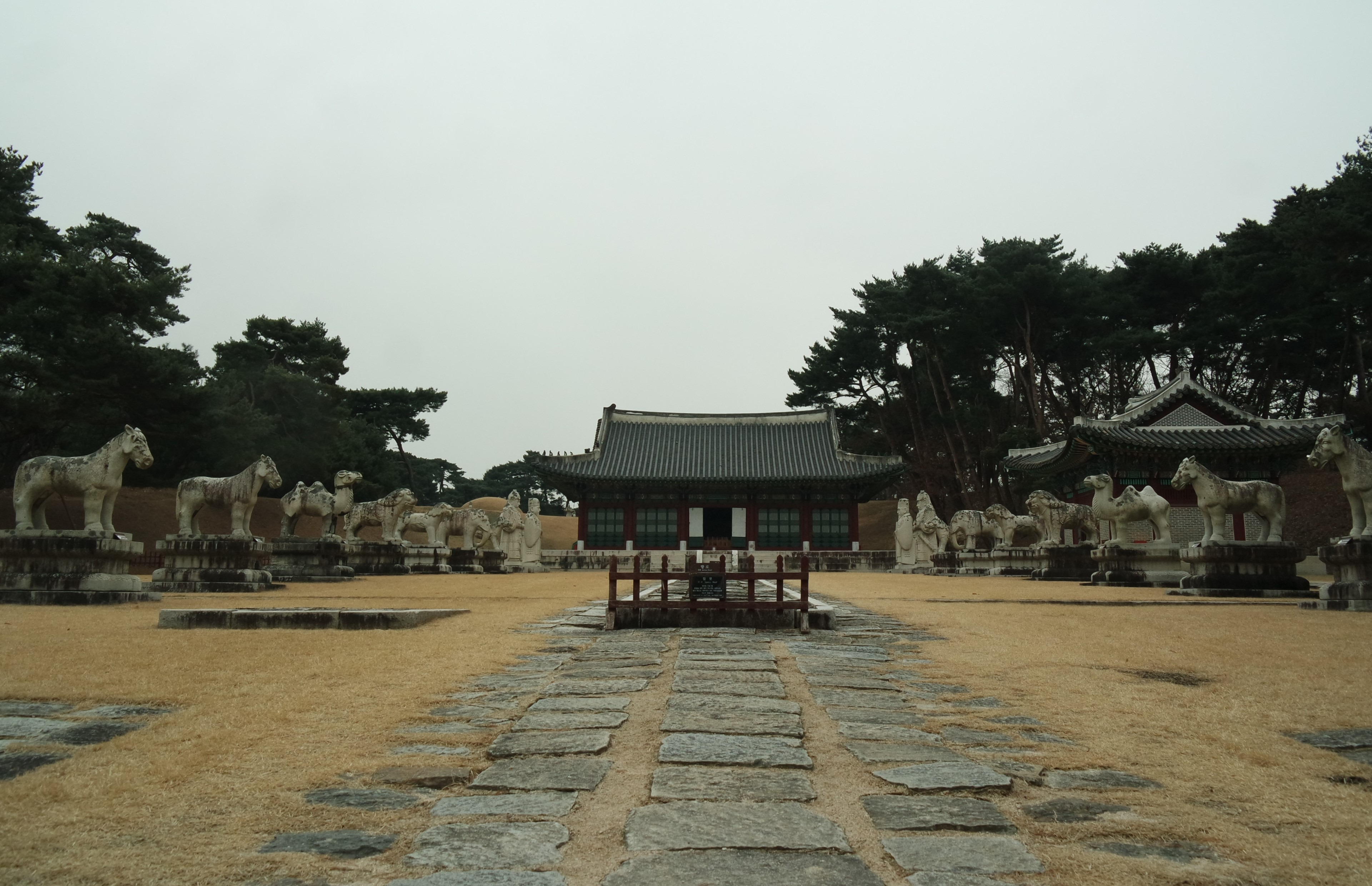 배전에 가장 앞쪽에는 문석인상과 무석인상이 차례로 자리하고 있으며, 석수는 그 다음에 이어서 자리하고 있다. 석수는 6종류로서 기린, 코끼리, 사자, 해태, 낙타, 말의 순으로 참도를 가운데에 두고 서로 마주 보도록 배치되어 있다. 낙타 옆으로는 맨 끝에 석마가 2구씩 양쪽으로 모두 4구가 자리하였다.