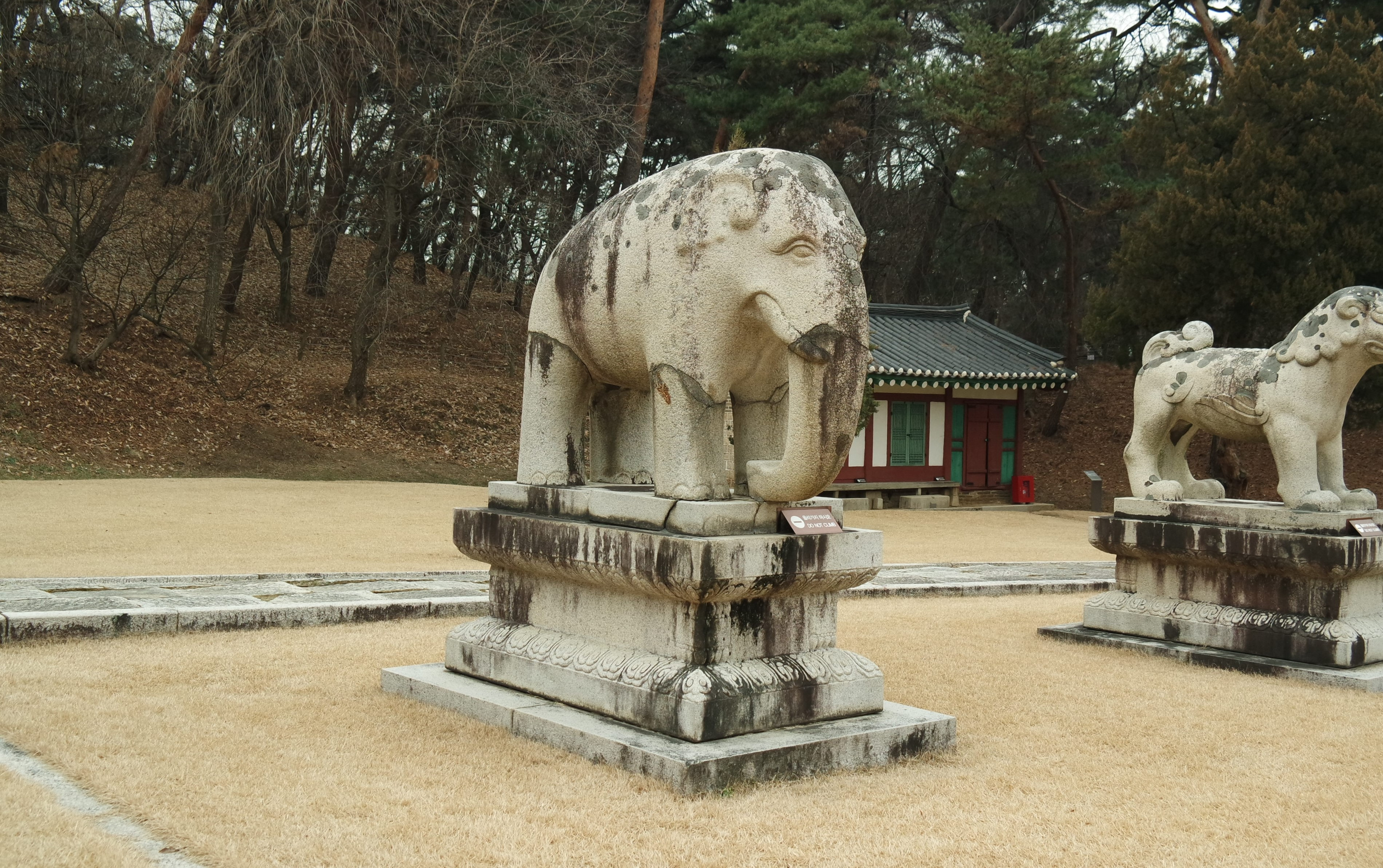 코끼리상은 바닥까지 오는 긴 코와 크게 돌출된 어금니 등 기본적으로 코끼리의 형상을 사실적으로 표현하였다. 전체 길이는 219cm 정도이다. 홍릉 코끼리상에 비해 눈꺼플이 표현된 눈이나 귀 등의 표현이 훨씬 사실적이다.