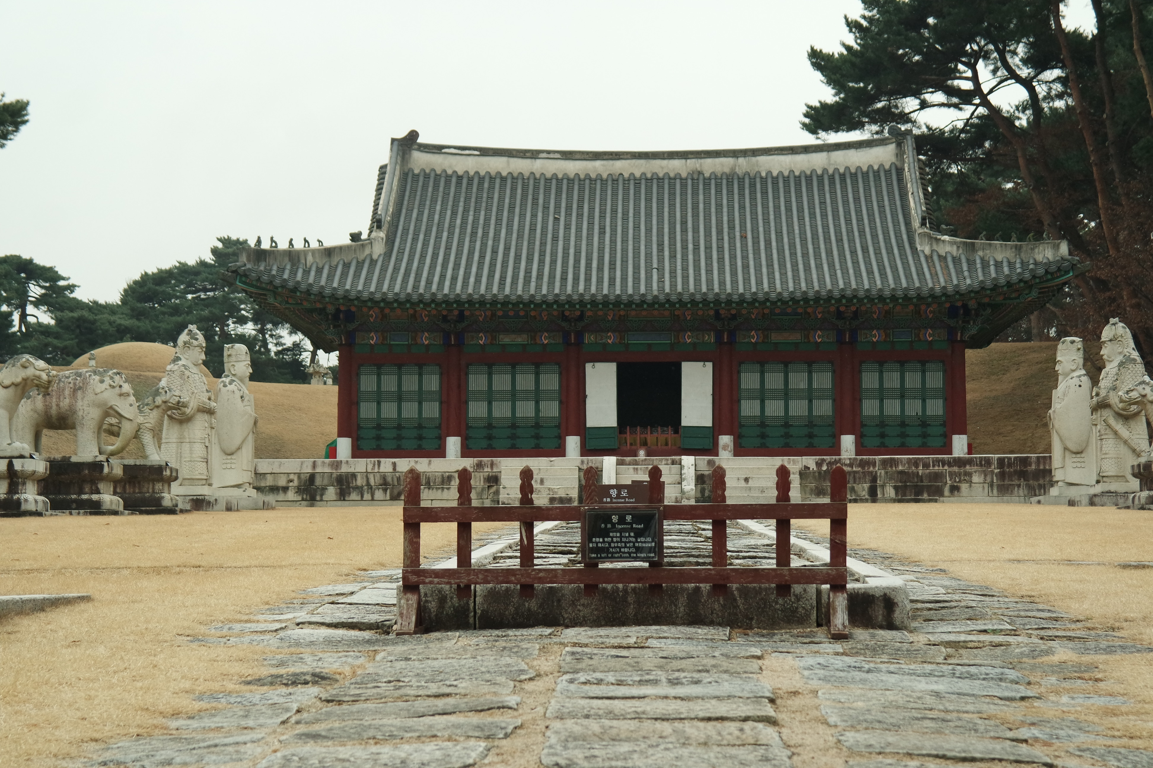 홍살문 가운데 부분에서 시작하는 향어로는 다른 능과 달리 가운데 향로 부분만 가장자리를 장대석으로 두르고 박석을 깔았다. 향로의 좌우에도 박석을 깔았지만 장대석 경계가 없어, 홍릉의 3중로와 같은 구조로 보기는 어렵다. 폭은 향로가 2,172mm다.