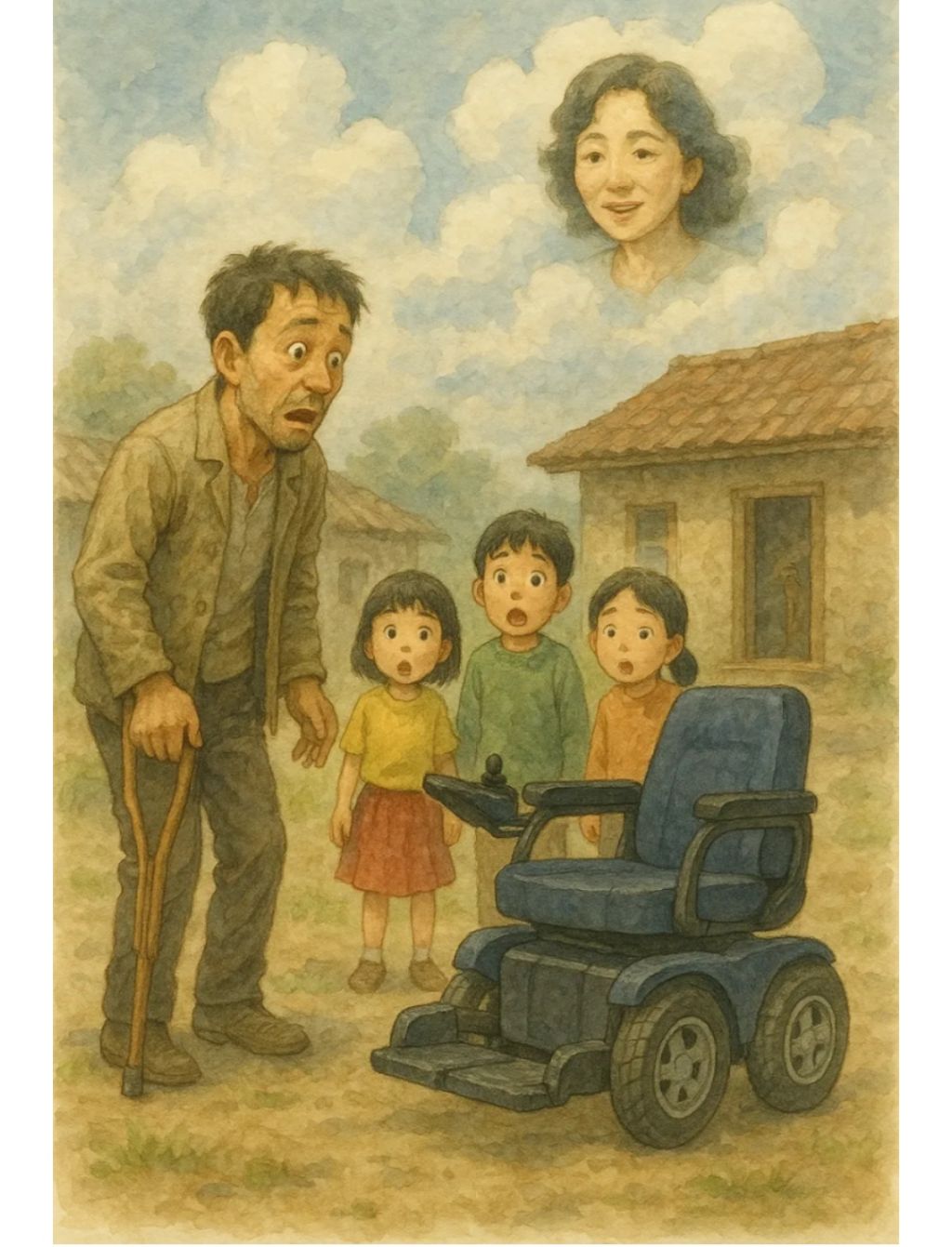 대문 옆에 놓인 녹슨 전동 휠체어를