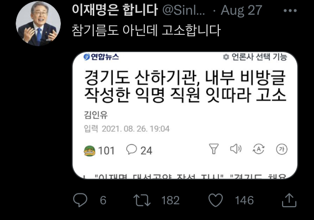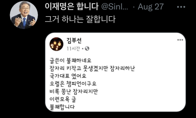 트위터에 나타난 '이재명은 합니다' 작성자사이비아웃|작성시간21.08.30|조회수152 목록 댓글 1 글자크기 작게가 글자크기 크게가 웃긴거 되게 많던데 이분 전에 이재명 패러디 계정하시던 분 아닌가? ㅋㅋㅋ 다음검색 현재 게시글 추가 기능 열기 북마크 공유하기 신고 센터로 신고 댓글 댓글 1 댓글쓰기 답글쓰기 댓글 리스트 작성자문프 | 작성시간 21.08.30 ㅋㅋㅋㅋㅋㅋㅋ 이건 또 뭔가요 댓글 전체보기