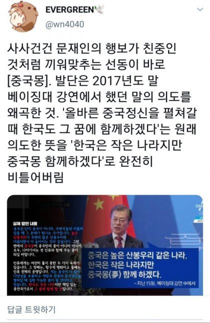 뽐뿌에서도 수없이 올라오는 문재인 중국몽 선동짤은 완전히 구라입니다