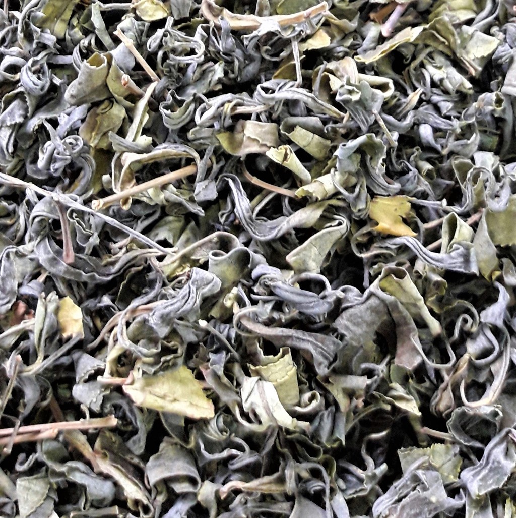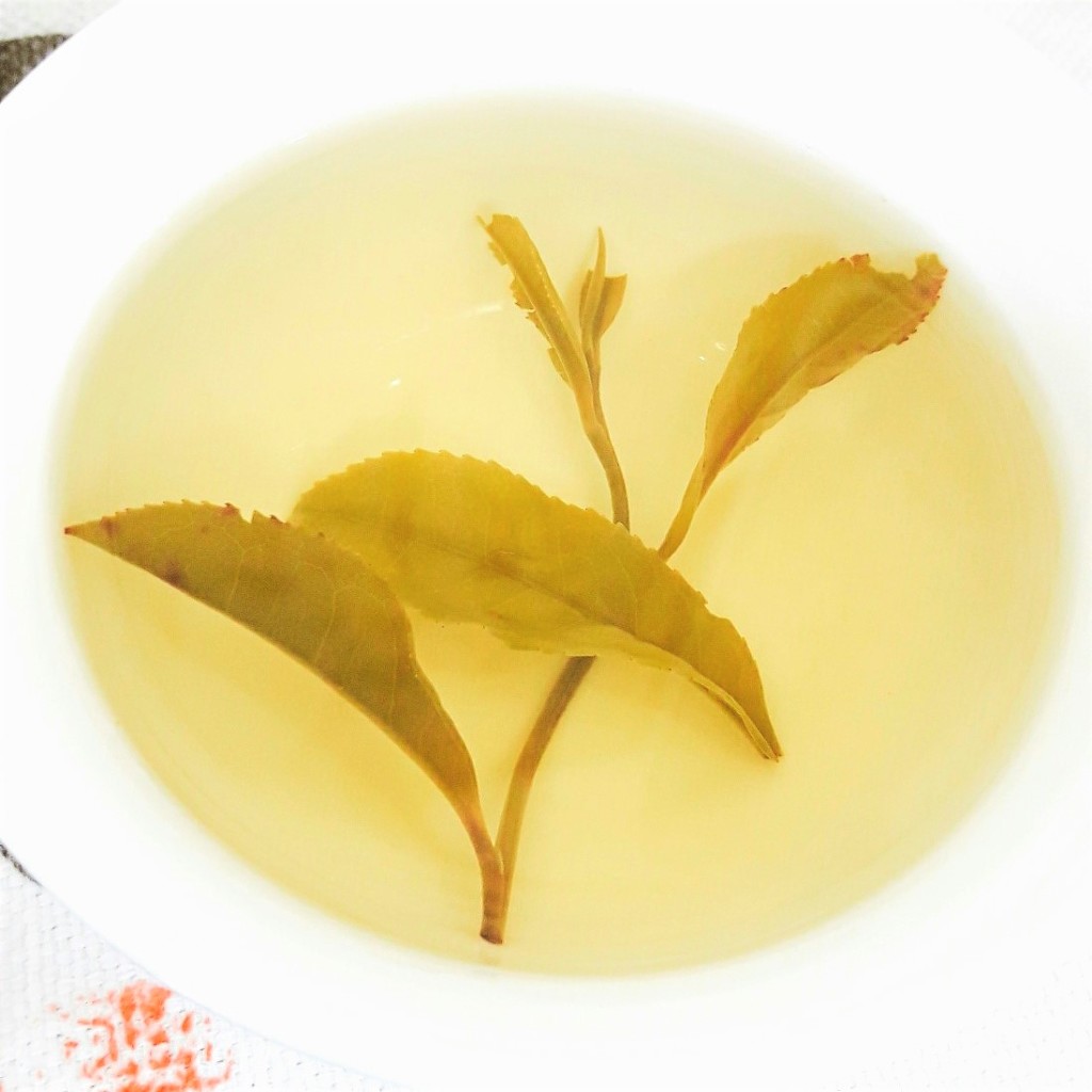 완성차의 풍미를 그르치는 황편은 거의 부서져 나가고, 차가 되는 녹편과 잎줄기만 보인다. 찐녹차는 비비기를 할 때 부서진 잎 등이 찻닢에 붙어 있다가, 찻물의 색향미를 어지럽게 만든다.