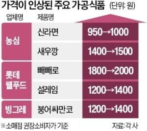 ◇가공식품 가격 줄줄이 올려