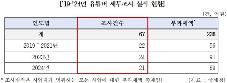 지금까지 실제 세무조사 이루어진 유튜버는 없어.