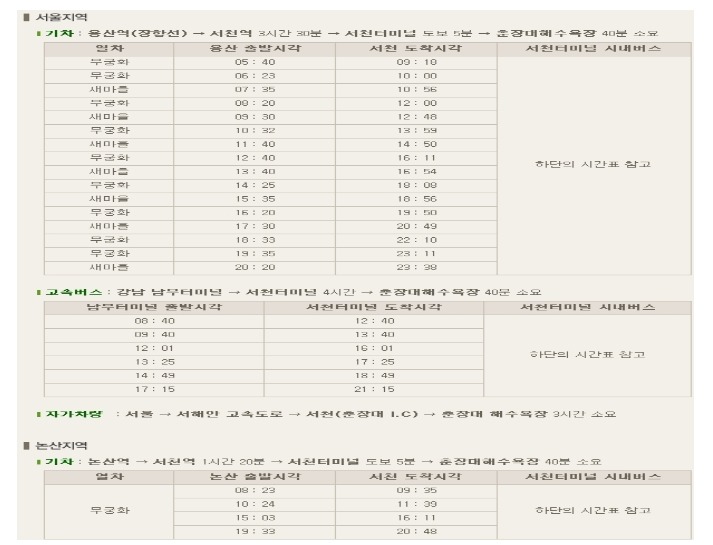 ※ 준비물 : 개인용 세면도구, 간단한 필기도구, 간편한 복장, 샌들, 수영복 등