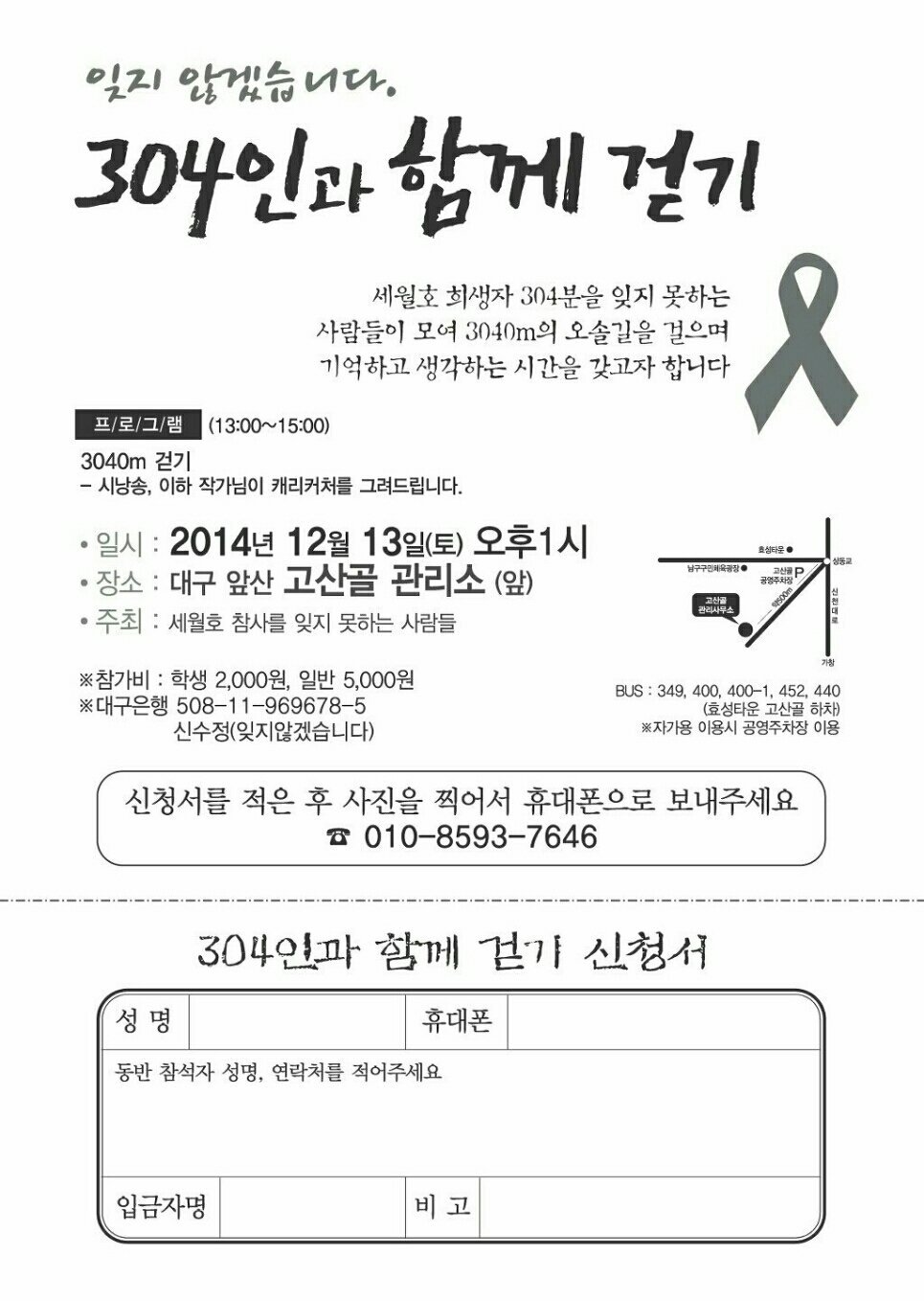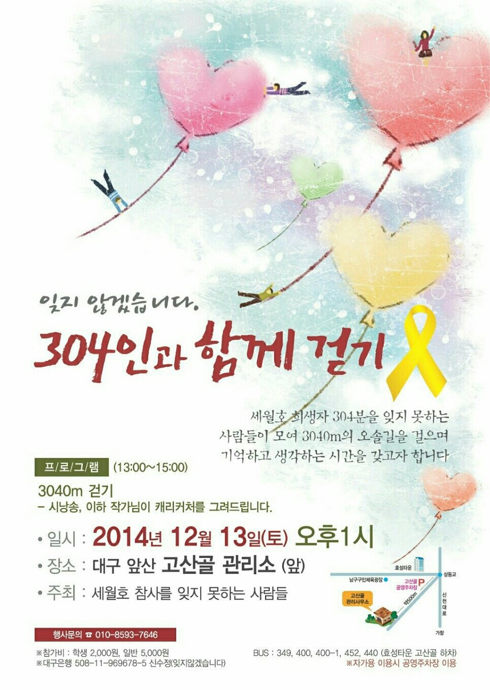 세월호 희생사 304분을 잊지 못하는 사람들이 모여 3040m 오솔길을 걸으며 기억하고 생각하는 시간을 갖고자 합니다.