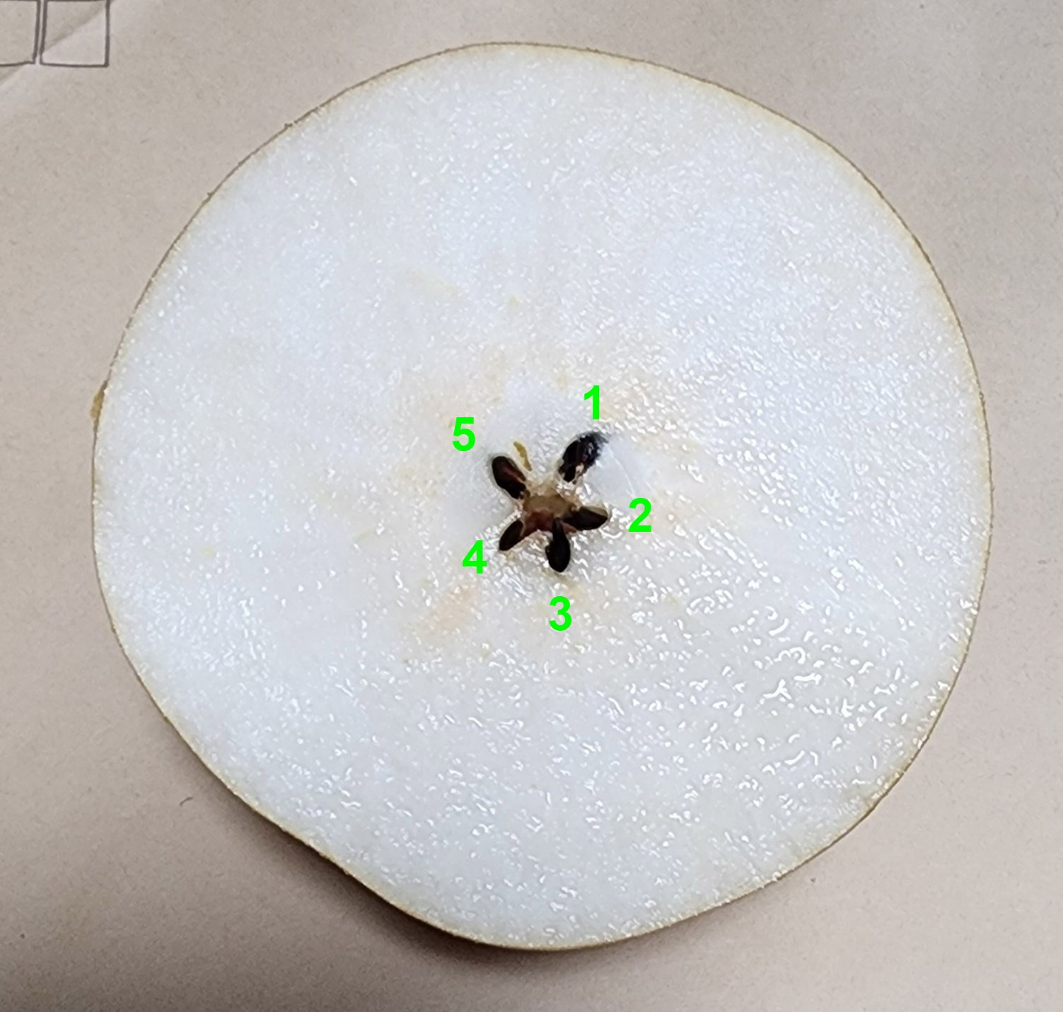 | 실물사진 | 감(씨앗 8×1=8) | 배(씨앗 5×2=10) | ||