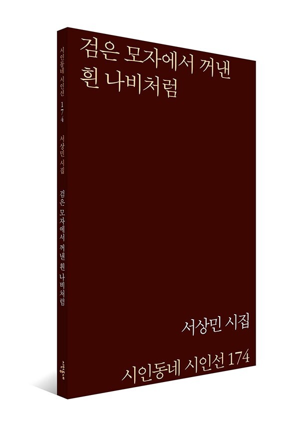 2018년 《문예바다》 신인상을 수상하며 작품 활동을 시작한 서상민 시인의 첫 시집 『검은 모자에서 꺼낸 흰 나비처럼』이 시인동네 시인선 174로 출간되었다. 서상민의 시는 눈에 보이거나 말해지는 것 너머의 세계에 대해 이야기하고 싶어 한다. 규격화된 정서나 통약 가능한 세계 인식 너머에 사물과 말의 참된 세계가 있으리라는 그의 믿음은 앞으로도 그를 계속 흔들거리는 자세로 서 있게 할 것이다.