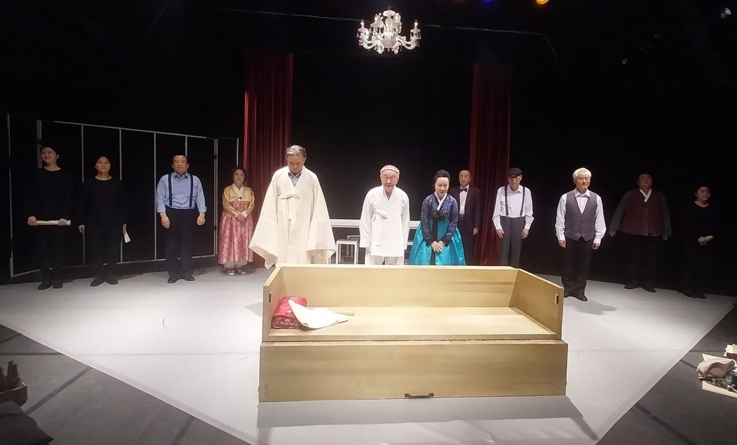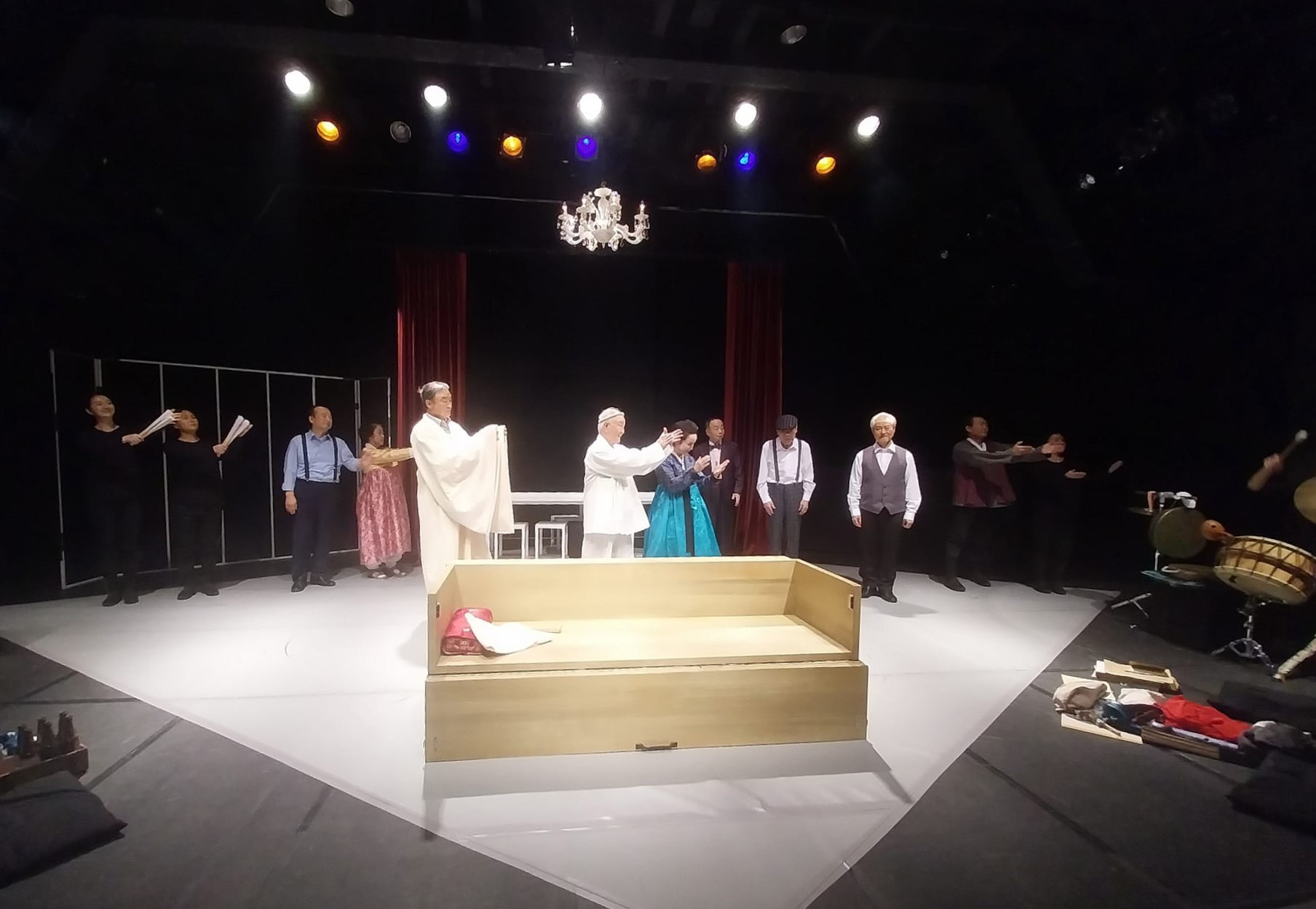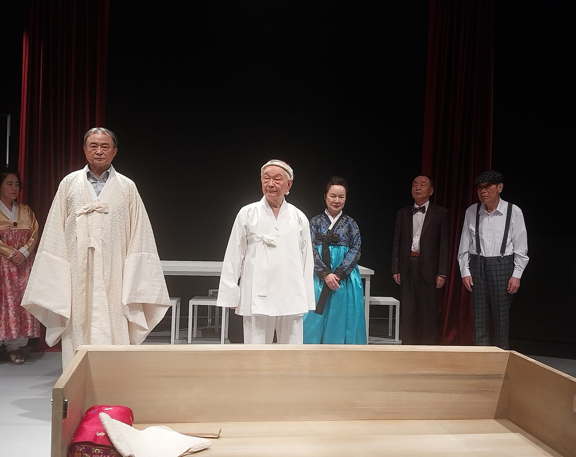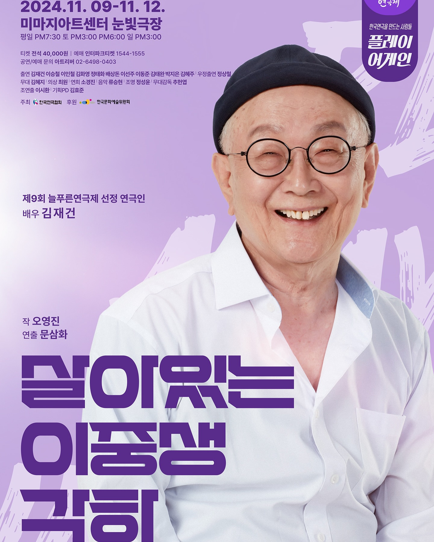 "살아있는 이중생 각하" (작:오영진 연출:문삼화 무대:김혜지 의상:최원 연희:소경진 음악:류승현 조명:정성윤 분장디자인:이동민 출연:김재건, 이승철, 이인철, 김화영, 정태화, 배상돈, 이선주, 이동준, 김태완, 박지은, 김혜주, 강지현, 정상철 제작:공연백달 탄탄 극장:미마지아트센터 눈빛극장 별점:★★★☆☆) 제9회 늘푸른연극제 두 번째 작품이다. 2021년도에 "신데렐라" 를 봤었던 공연배달 탄탄 공연이다. 작품은 찾아보니 2014년도에 봤었다. 그 때도 김재건 배우님이 출연 하셨내... 공연 초반 3분 안에 관객의 눈과 마음을 사로 잡아야 한다는 니나가와 유키오 의 말처럼, 첫 장면은 좋았으나 중반 이후 부터 집중이 안된다. 첫 장면이 좋아서 별점 1개 추가! 역시 원로 배우님 들의 연륜이 묻어나는 연기가 좋았다.