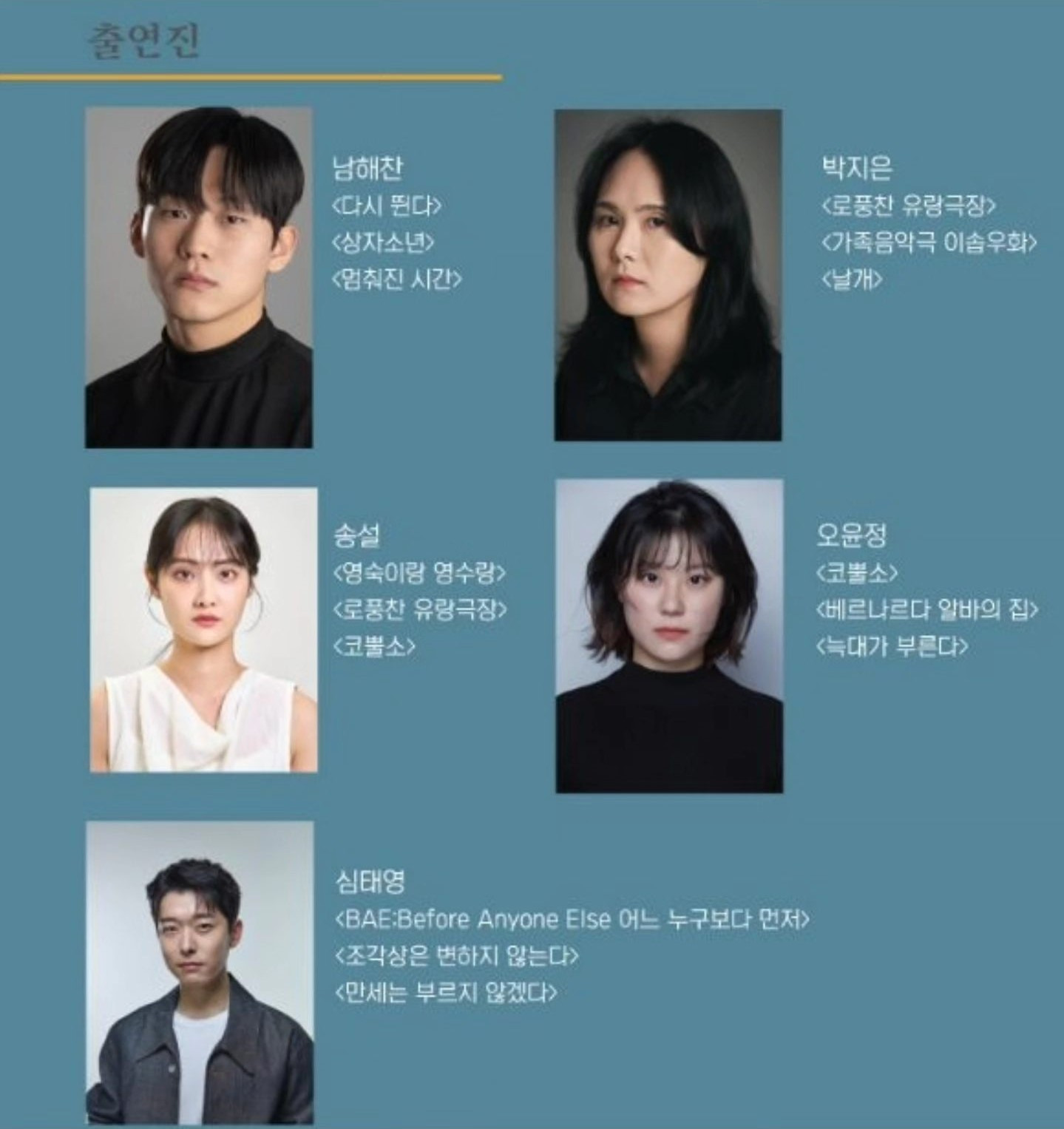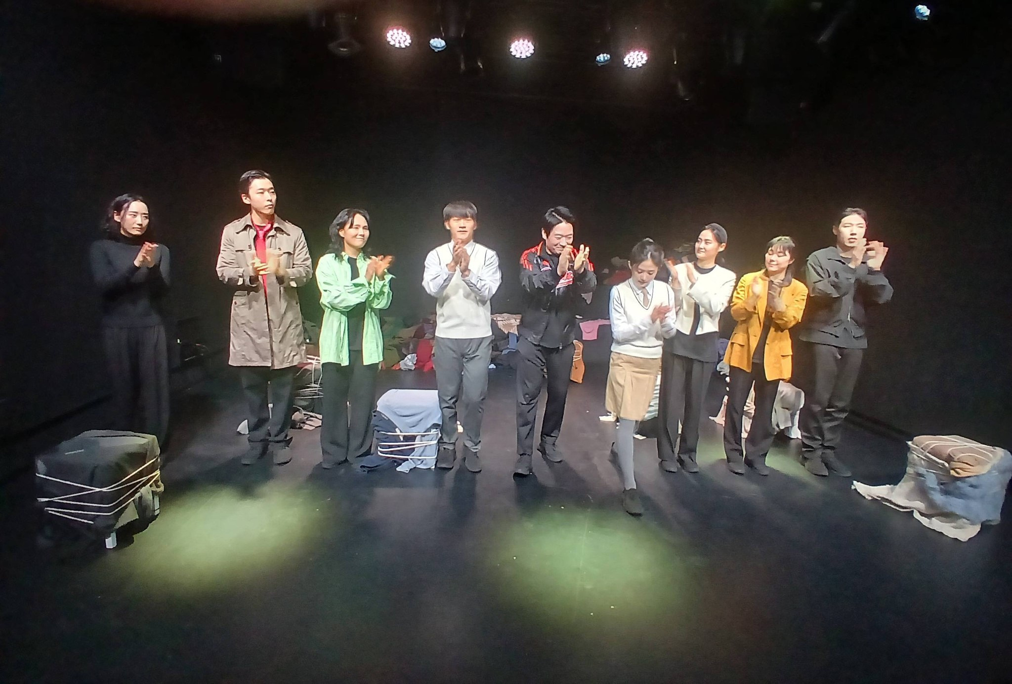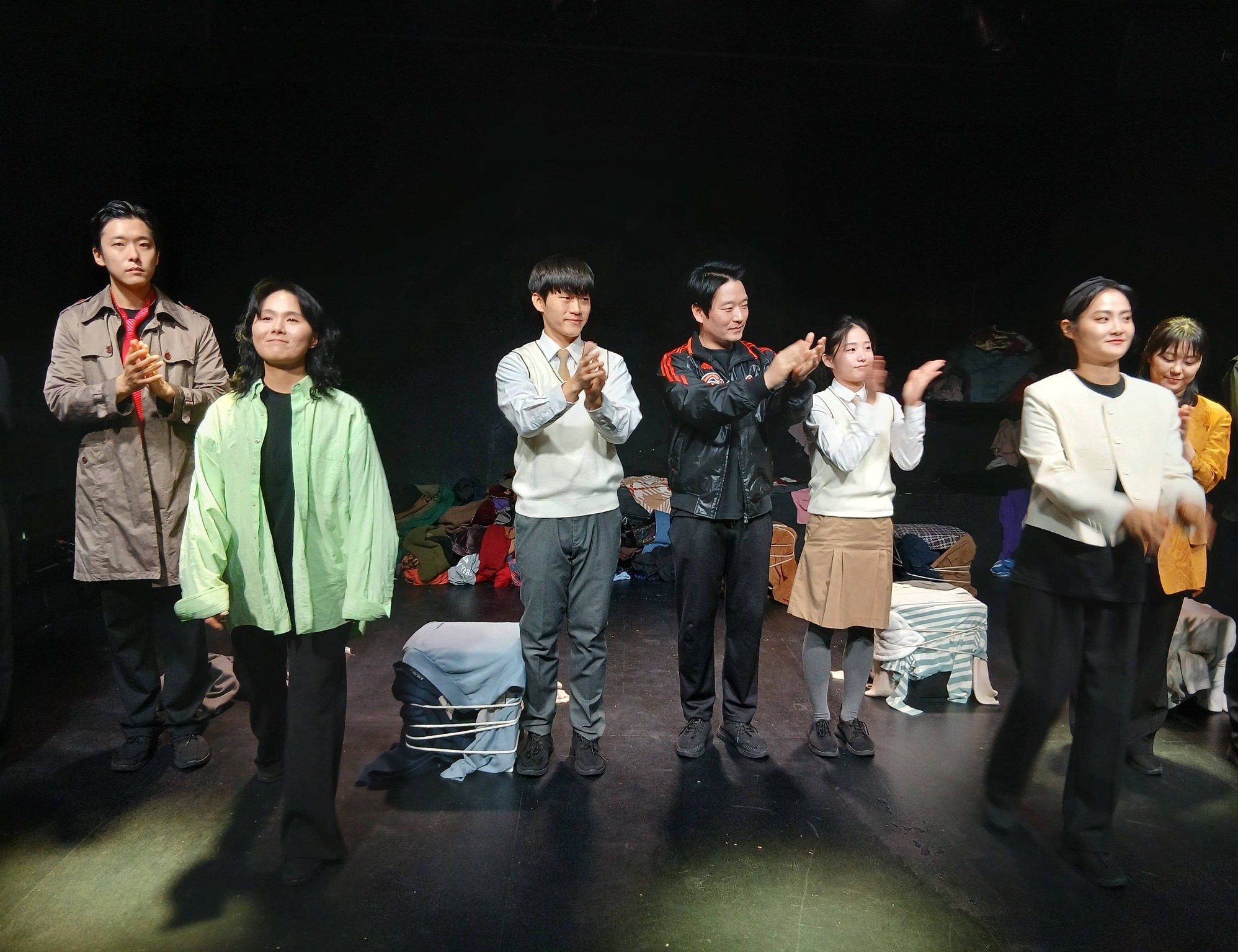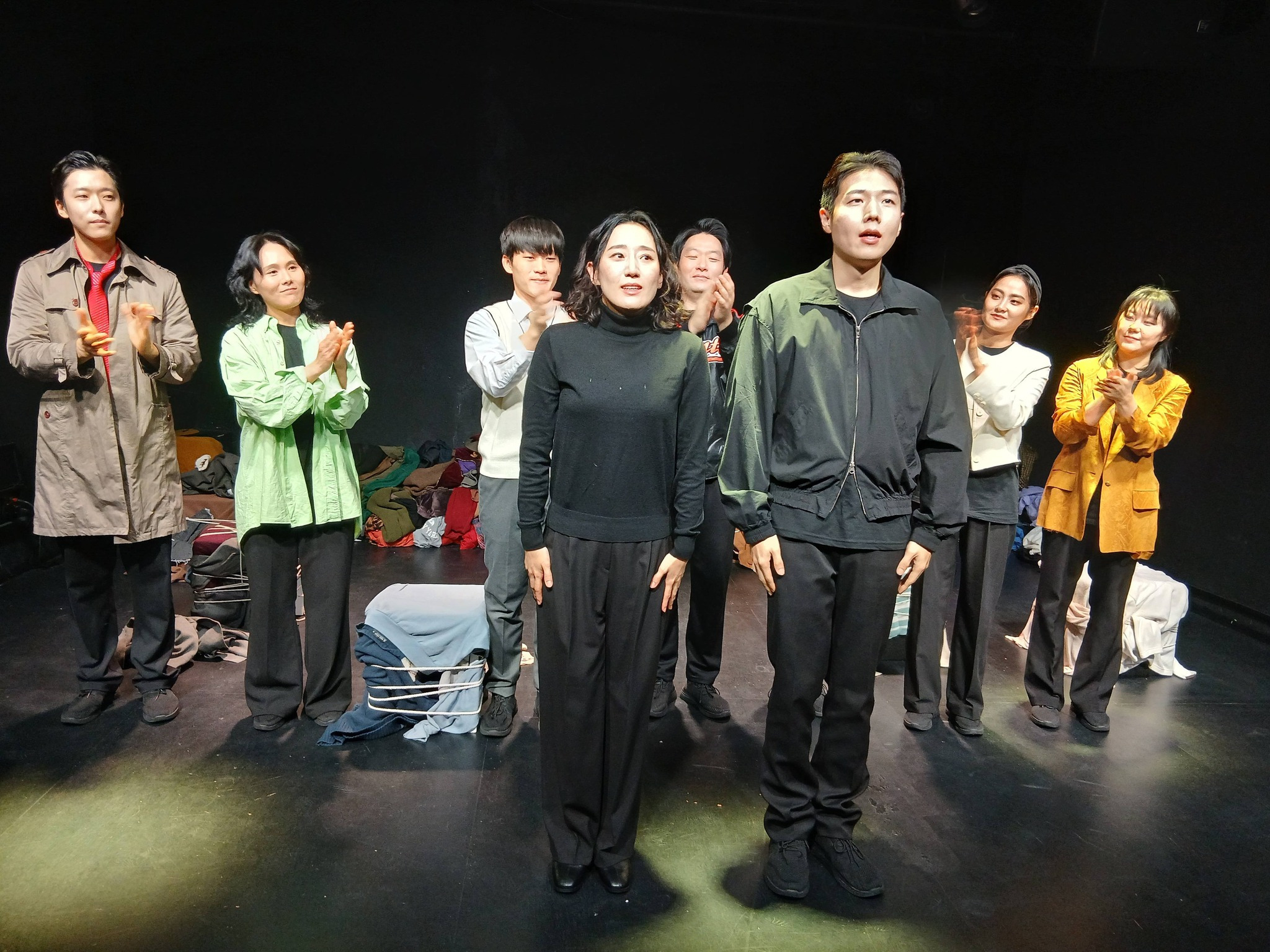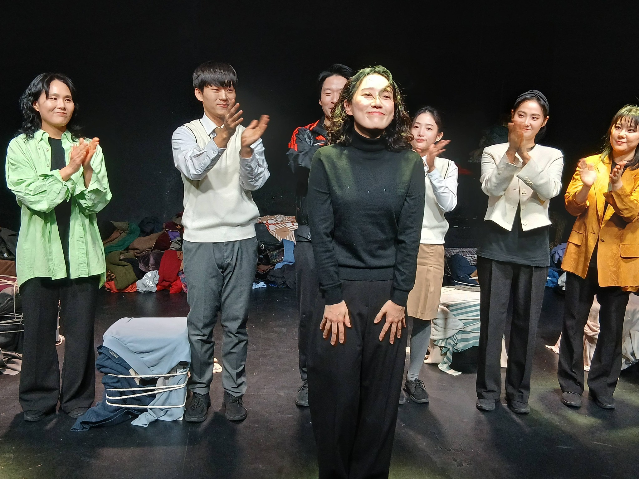 "H에게" (H이야기 1부 작,연출:황이선 조명디자인:호랑이삼촌 음악디자인:RAINBOW99 아트디렉터:유주영 현장진행:김지원 홍보물제작:공상집단 뚱딴지 출연:남해찬, 박지은, 송설, 오윤정, 염서현, 윤광희, 정다연, 최동균, 심태영 주최:공상집단 뚱딴지 극장:삼일로 창고극장 별점:★★★☆☆) 전작 "고요한 집" 을 봤었던 너무나 애정하는 극단인 공상집단 뚱딴지의 공연이다. <H에게> 는 3년간 '금지의 지금, 지금의 금지'라는 테마를 가지고 '여온의 Y이야기 3부작', '황이선의 H이야기 3부작' 을 기획하여 공상집단 뚱딴지에서 선보이는 2025년 창작 신작이다. 옷을 하나씩 끼워 입는게 특이하다. 다음 2부 작품도 기대된다.