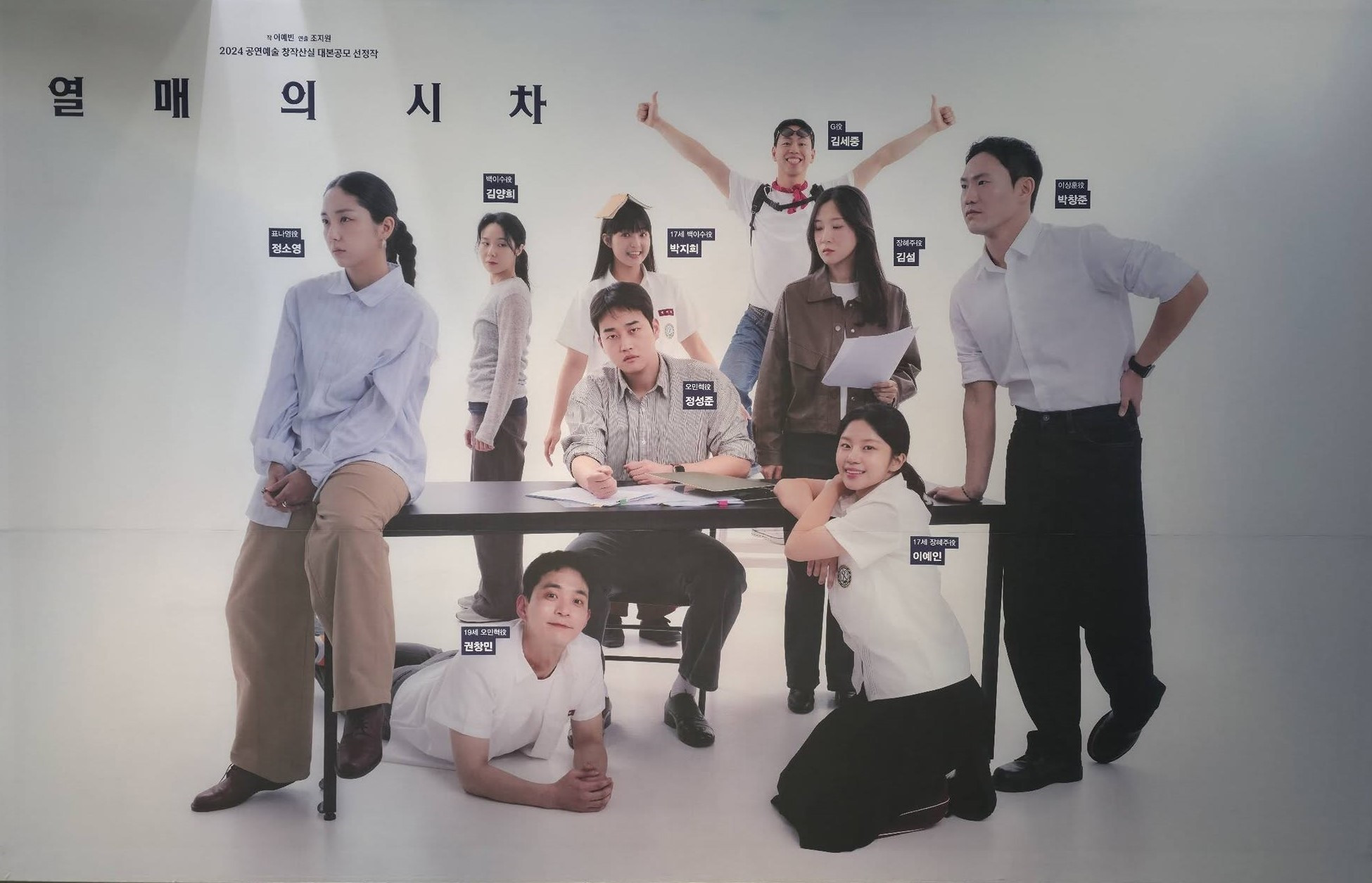 "열매의 시차" (작:이예빈 연출:조지원 조명디자인:배준서 조형디자인:Dustnroom 음악구성:유자적 시노그라피:조예나 움직임자문:박소희 사진,그래픽:이미지 작업장 출연:김양희, 박지희, 김섬, 이예인, 정성준, 권창민, 박창준, 정소영, 김세중 제작:극단 문지방 극장:대학로극장 쿼드 별점:★★★☆☆) 우서대학교 총학생회장 후보 오민혁에 대한 과거 교제폭력 제보가 접수되고, 비상대책회의가 열린다. 회의장에는 가해 지목인과 피해자 대리인, 그리고 이 사안을 판단해야 하는 사람들이 모인다. 각자의 언어와 윤리, 신념이 충돌하며 회의는 점점 균열을 드러내고, 논의는 사건이 발생했던 시간으로 되돌아가기 시작한다. <열매의 시차>는 판단보다는, 시간과 기억의 엇갈림을 따라가며 질문하는 연극이다.