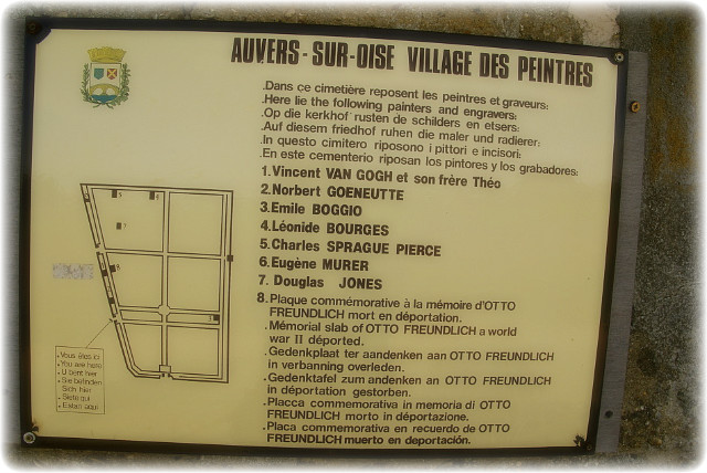 마을 동쪽 오베르 교회에서 언덕길을 오르면 고흐와 동생 테오(Theo)가 나란히 잠들어 있는 묘지에 닿는다. 고흐의 묘는 묘지에 들어서 왼쪽 벽 쪽에 위치해 있다. 형을 사랑하며 원조를 아끼지 않았던 테오는 고흐가 죽은 지 6개월 만에 숨을 거두었고, 네덜란드에 묻혔다가 1912년 형 옆에 안치됐다.