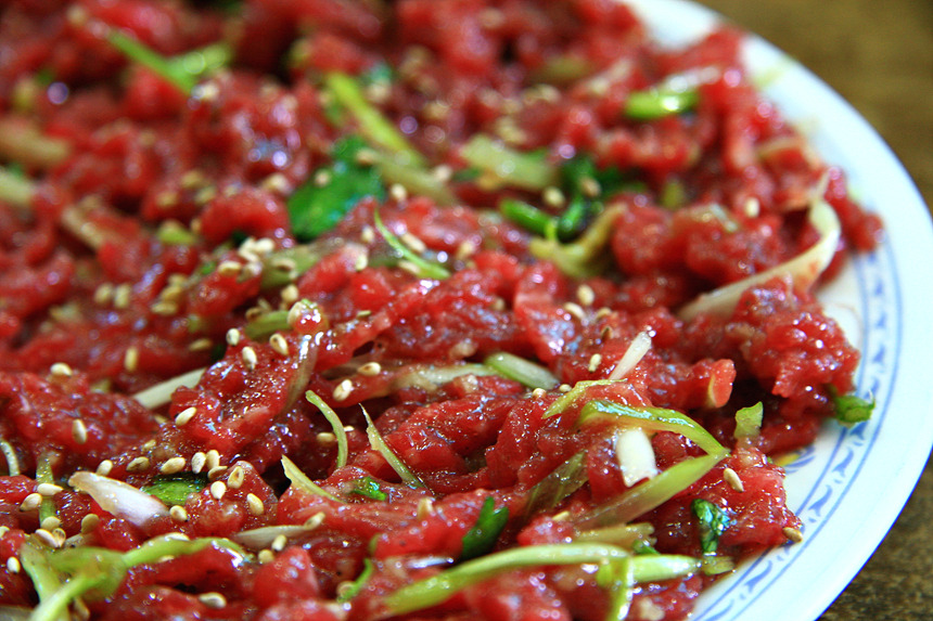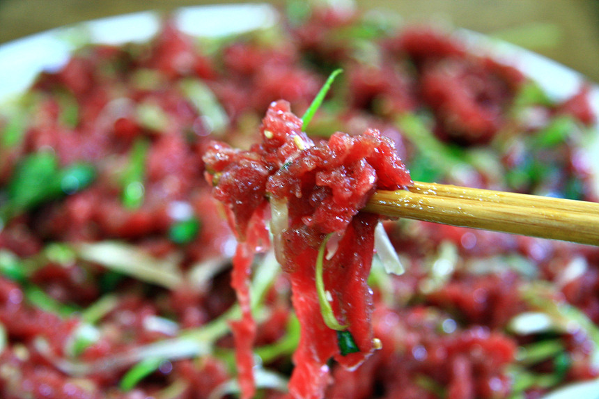 (*육회의 힘줄을 일일히 수작업으로 모두 제거*)