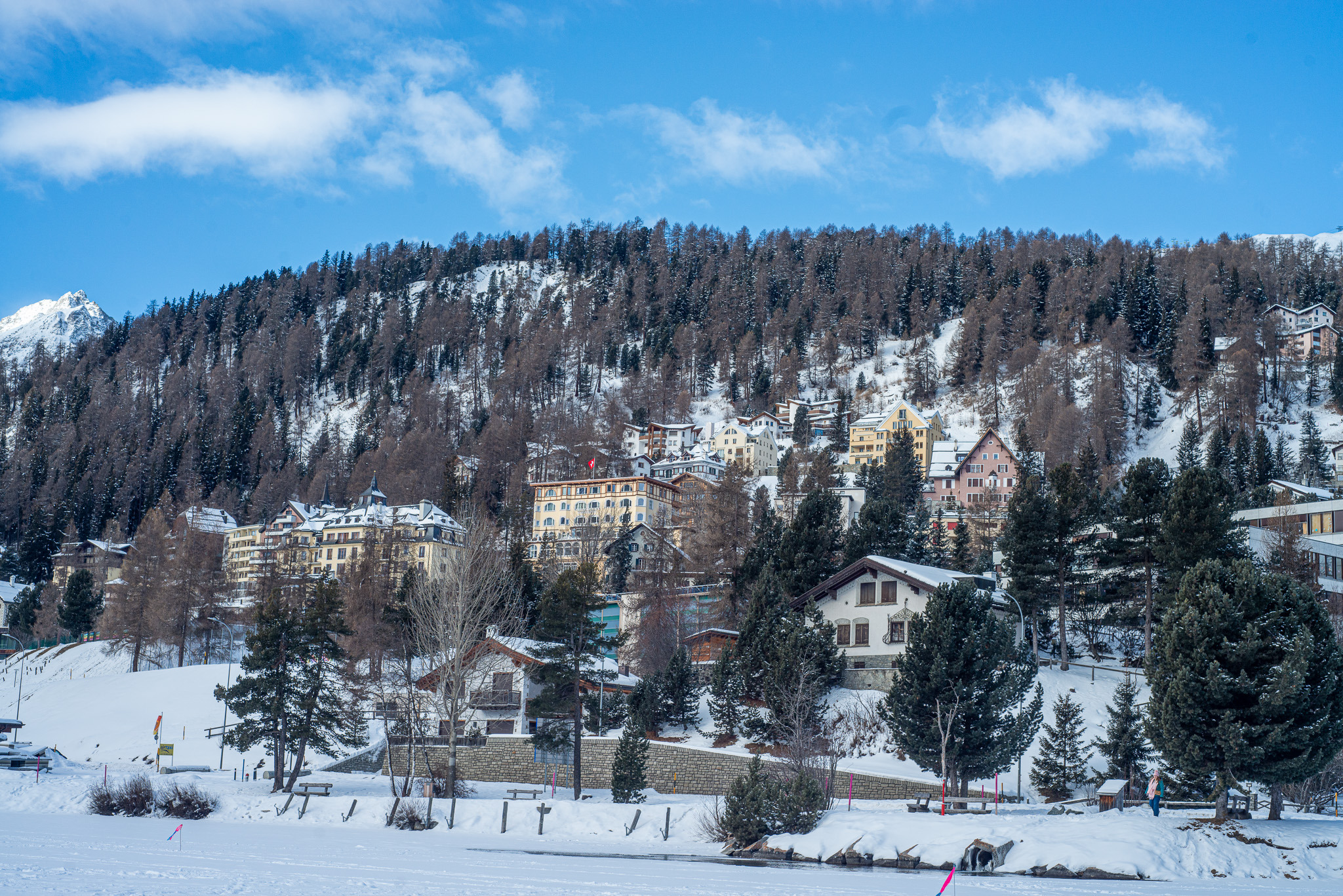 생모리츠는 스위스 그라우뷘덴 주의 어퍼 엥가딘 계곡에 위치한 해발 약 1,800m(5,910피트)의 유명한 고산 휴양 도시입니다. 아름다운 알프스 풍경, 고급 관광, 그리고 3,500여 년 전 발견된 치유 효과가 있는 미네랄 온천으로 유명한 역사적인 스파 여행지로 유명합니다. 17세기부터 유행하던 스파와 여름 휴양지였던 생모리츠는 19세기 후반 세계 최고의 겨울 스포츠 중심지 중 하나로 발전했습니다. 1928년과 1948년 두 차례 동계 올림픽을 개최한 이 리조트는 우아함, 고급스러움, 그리고 국제적인 분위기로 유명하며, 스키, 야외 활동, 문화, 그리고 고급스러운 경험을 위해 전 세계 관광객들을 끌어들이고 있습니다. 생모리츠는 광천과 관련된 풍부한 역사를 지니고 있으며, . 이 마을은 피츠 나이르 근처 알불라 알프스 아래에 자리 잡고 있으며, 생모리츠 호수를 내려다보고 있습니다. 철도와 인근 자메단 공항을 포함한 훌륭한 교통망을 갖추고 있어 관광 산업을 중심으로 한 지역 경제를 뒷받침하고 있습니다. 지역 주민들은 주로 독일어와 로망슈어를 사용하며, 주로 로마 가톨릭 신자입니다
