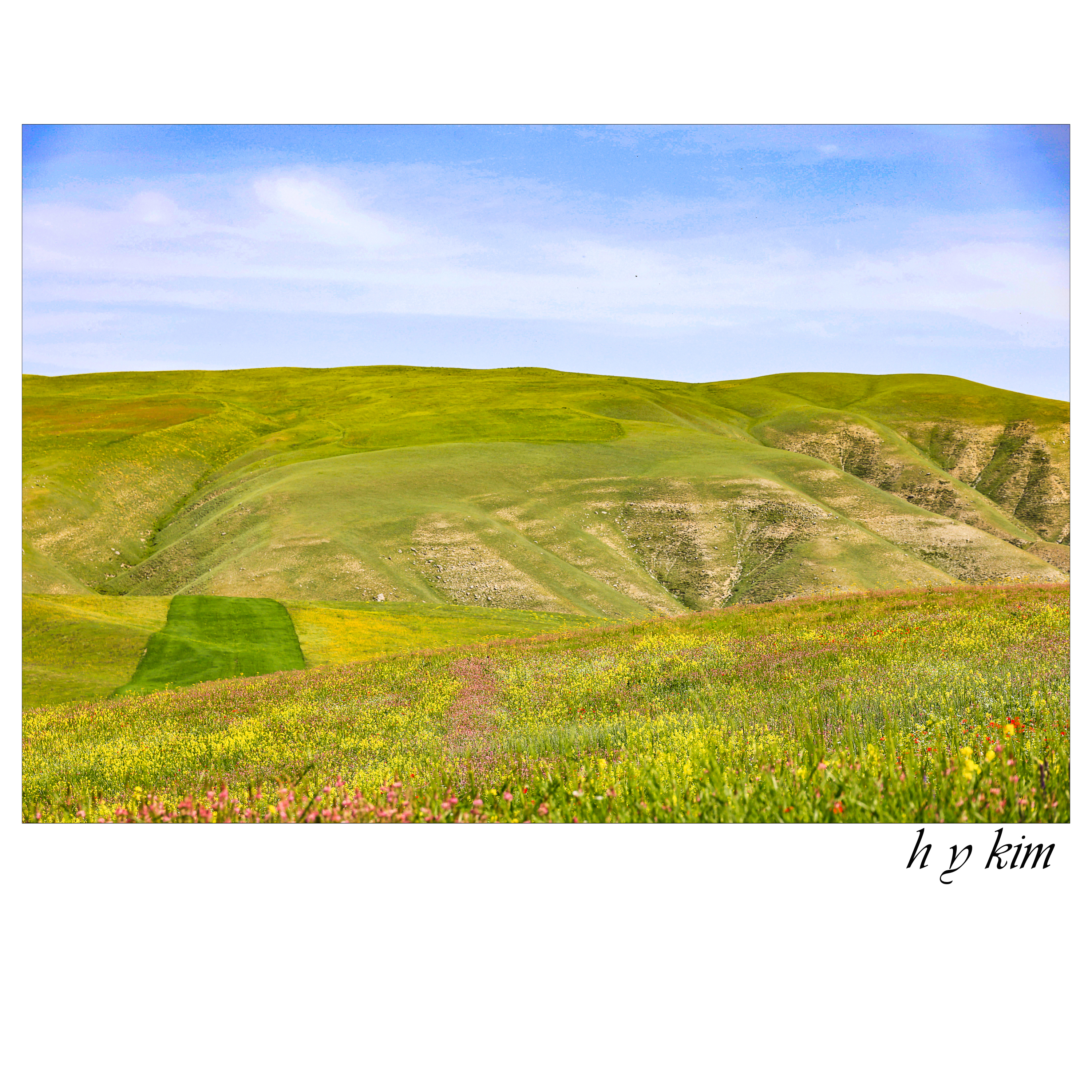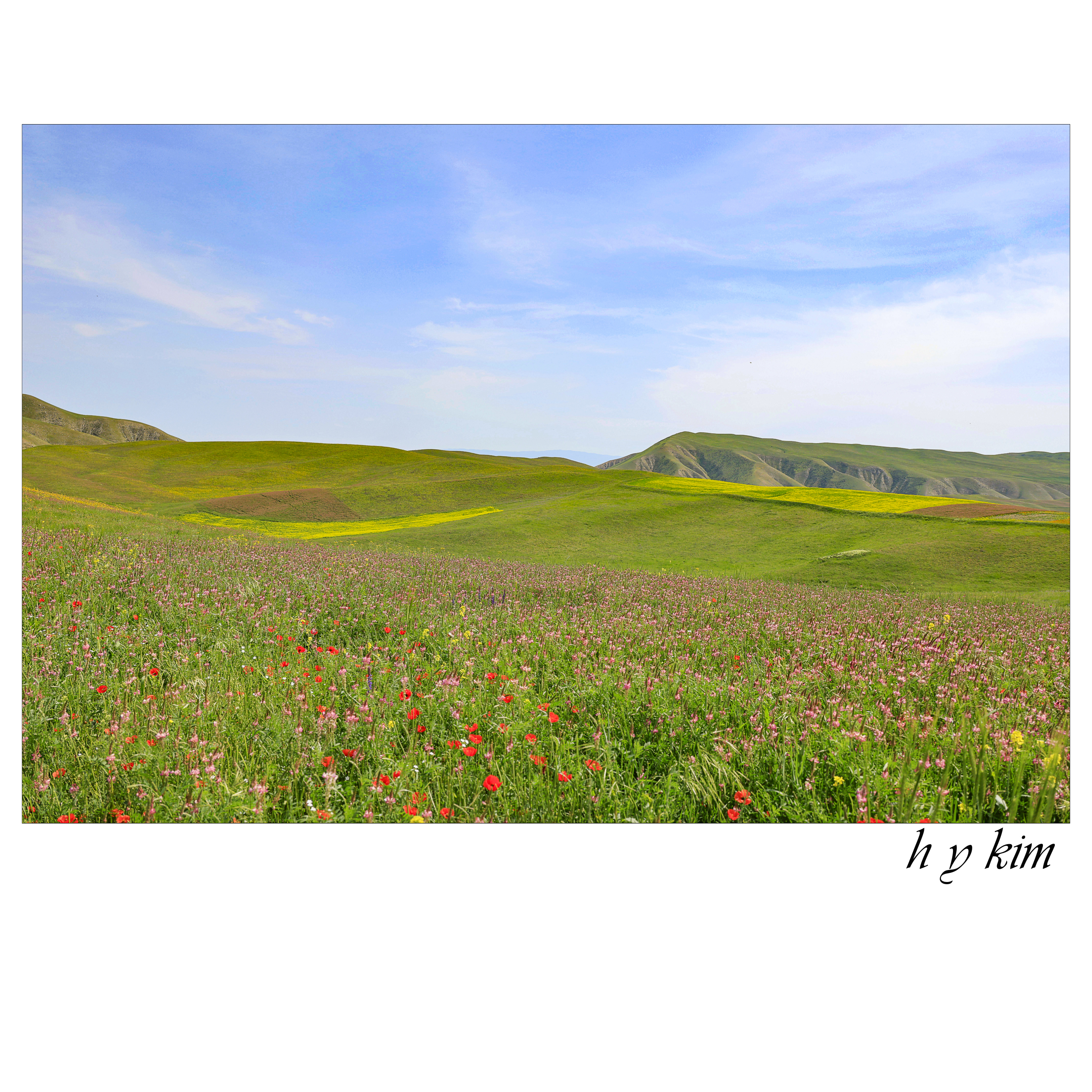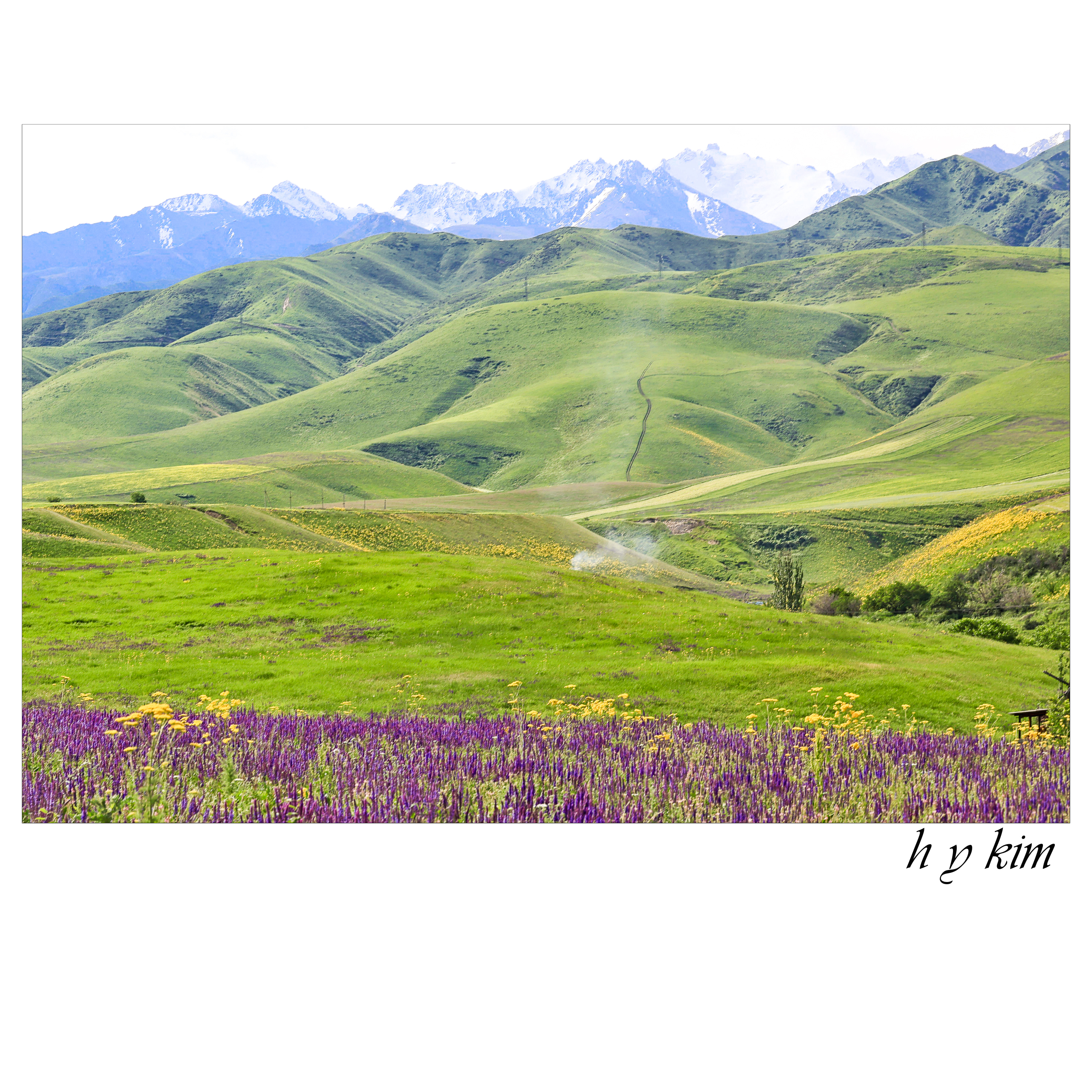 투명한 하늘, 밀도 높은 구름, 만년 설산, 흐드러진 야생화, 융단같은 산허리, 오롯이 자연뿐인 그곳에 발자욱을 디딘 사람들의 행복감을 헤아려 봅니다.