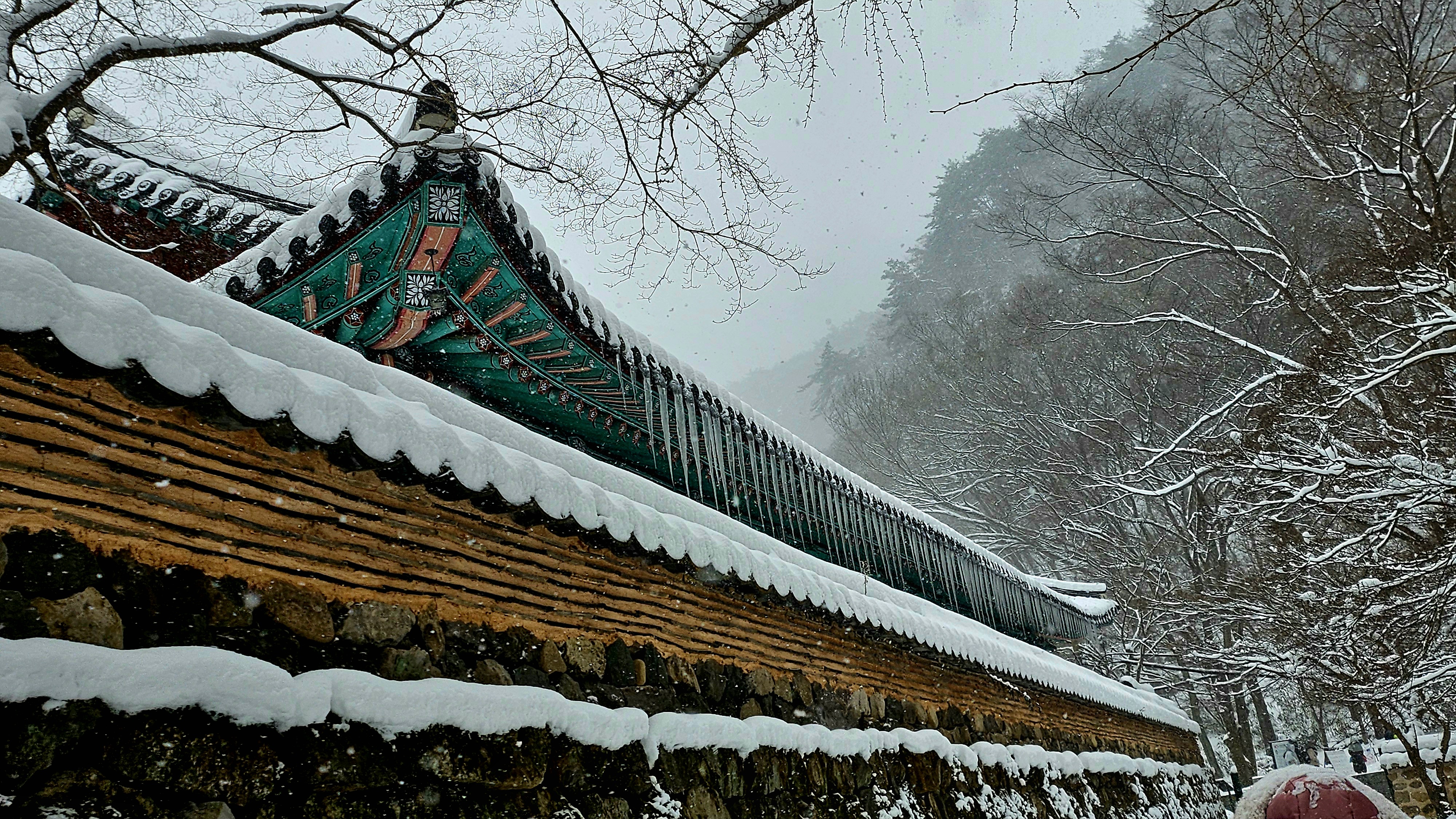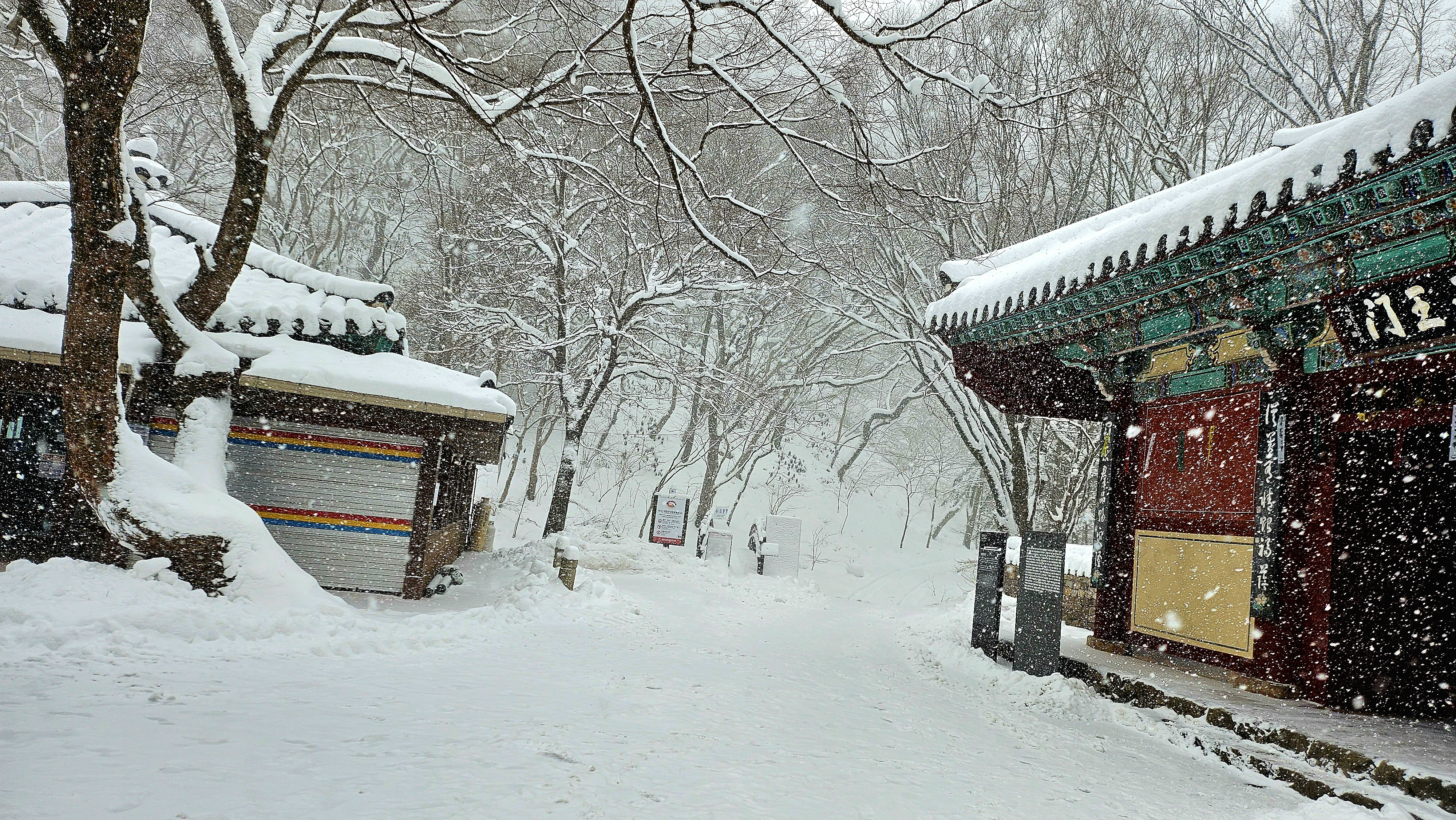 천왕문에 포슬포슬 가는 눈발이 흩날린다.