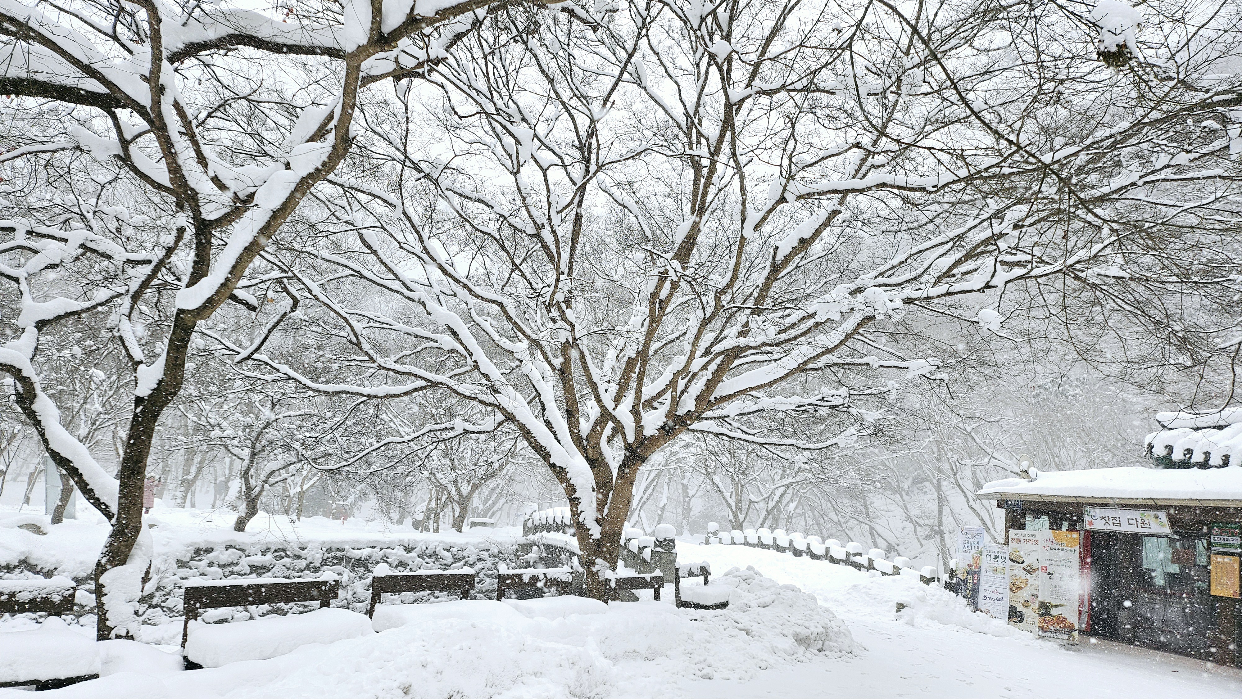 내장저수지, 내장산 조각공원, 내장사, 원적암, 벽련암을 눈길 트레킹 하다.