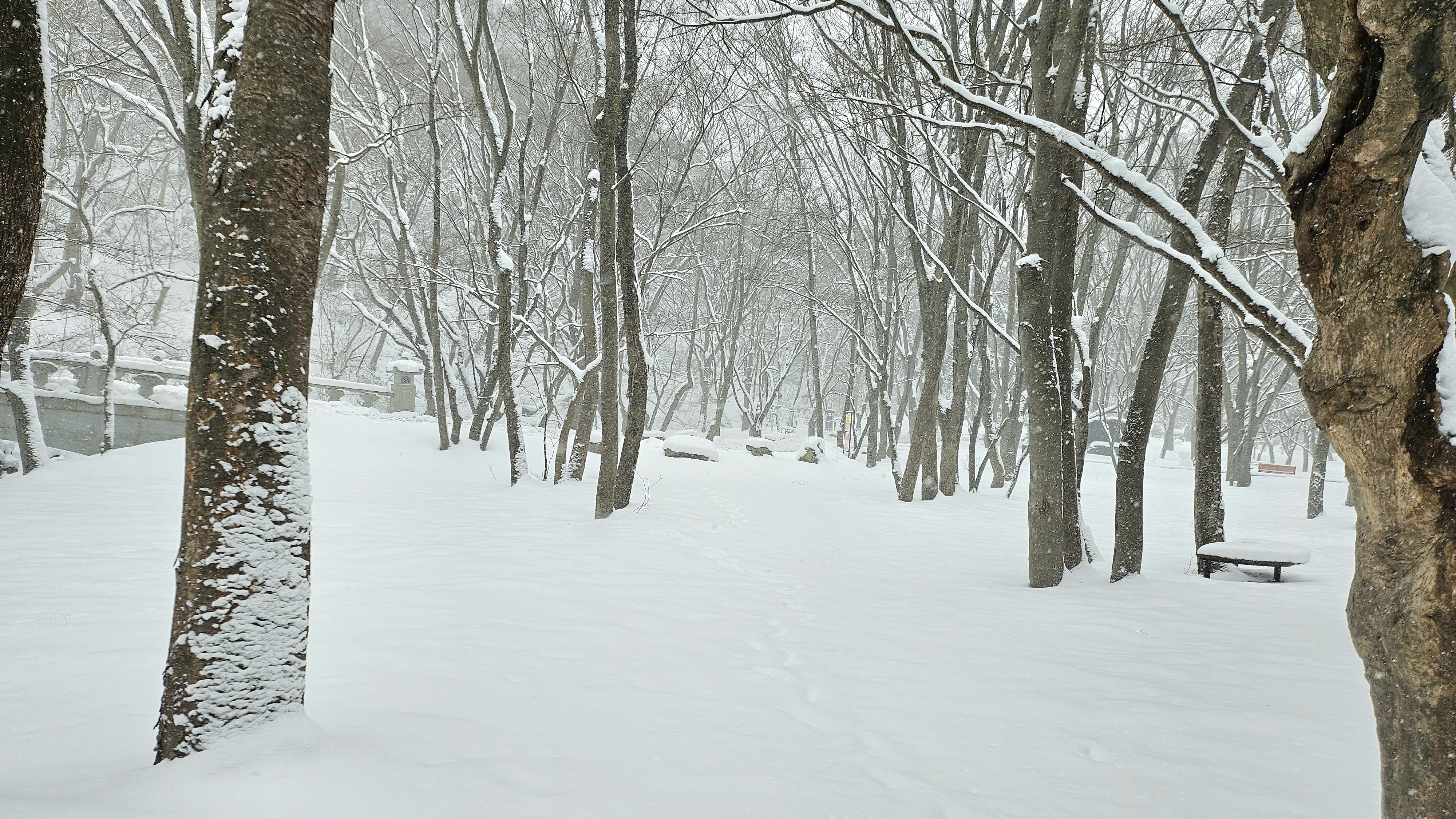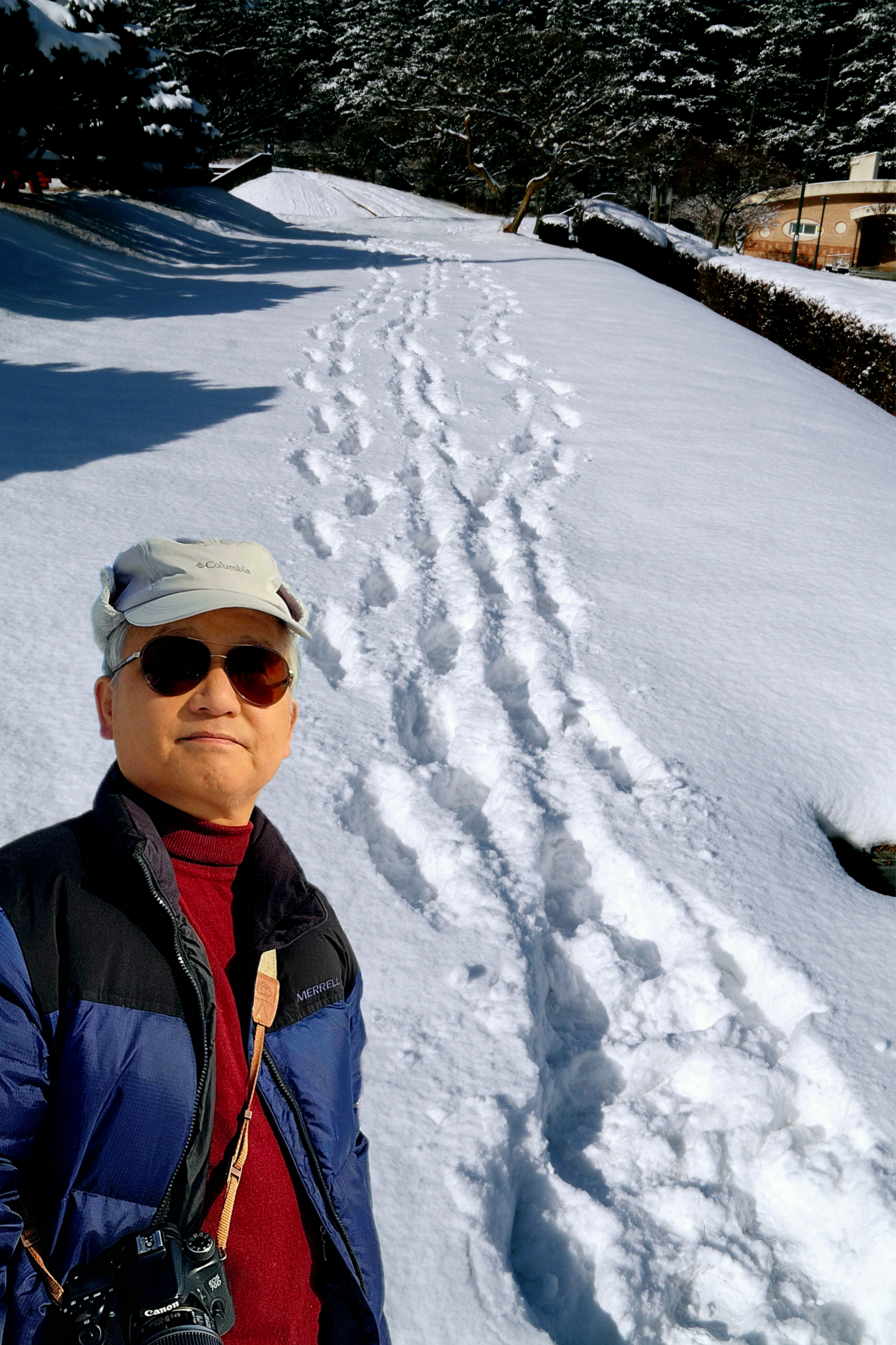 이청준의 소설 "눈길"이 떠오르는 눈 위의 발자국.