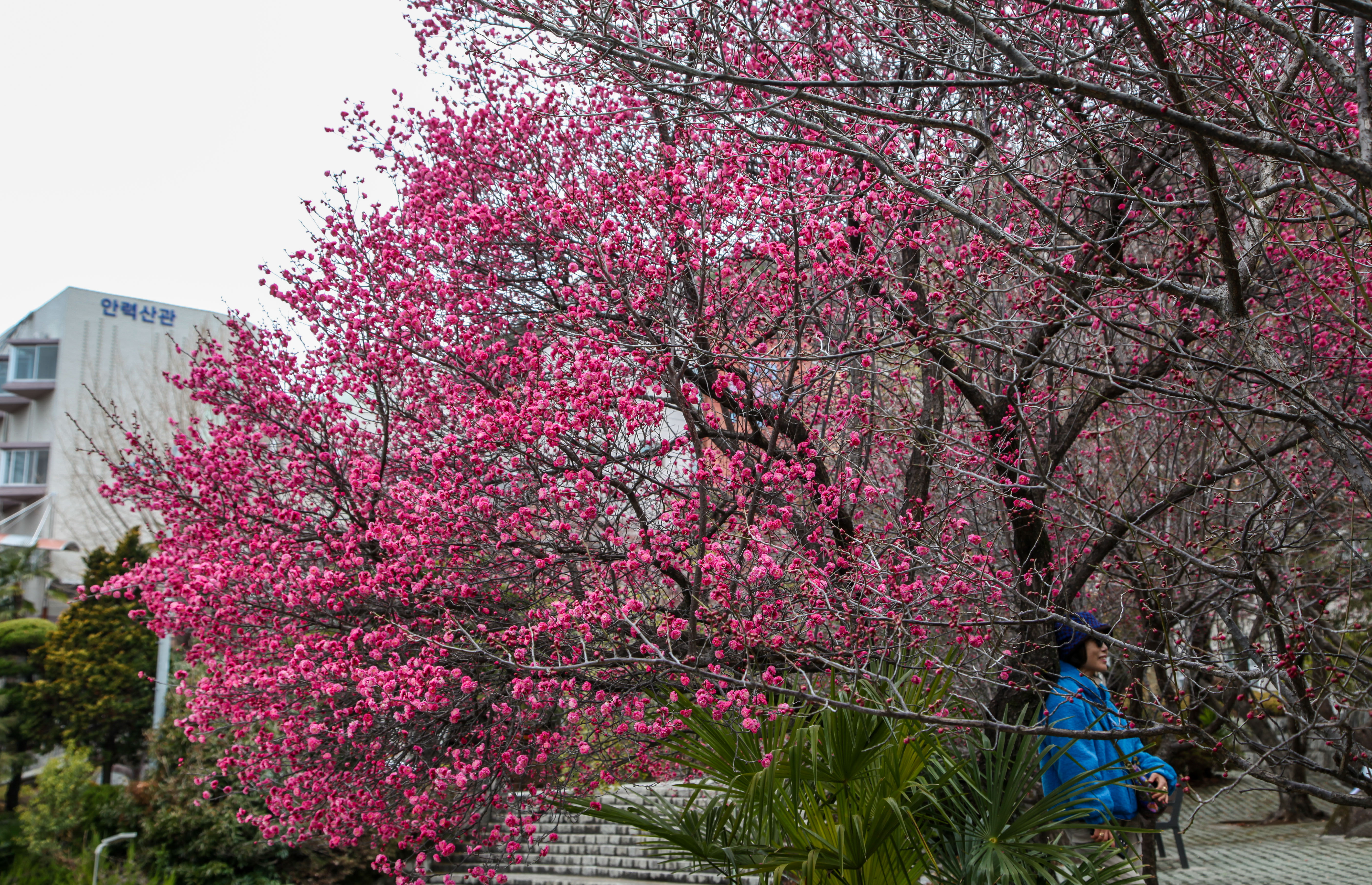 매곡동 김준선 전 순천대 교수 집 개방정원에 피어난 홍매화.