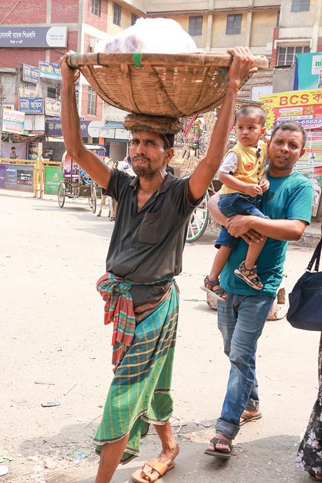 남자들이 모두 머리에 물건을 이고 나릅니다.