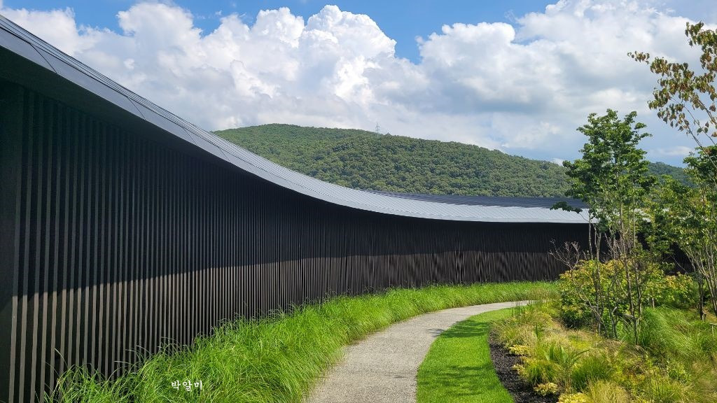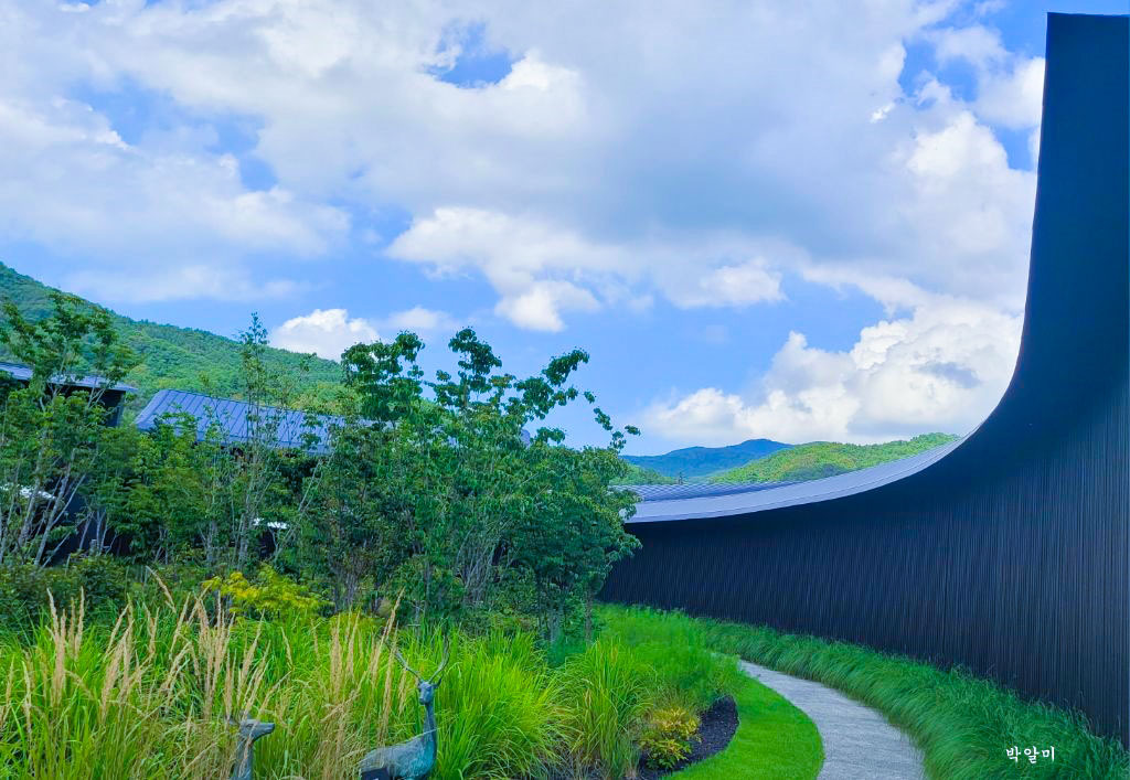 경북 칠곡군 망정리에 자리잡고 있는 시호재는 2023년 5월 문을 열었으며 게스트하우스와 카페가 결합된 프라이빗 레지던시로 대지면적 3천824m 건축면적 928.9m 규모에 지하1층 지상2층 높이의 건물로 세동의 활 모양처럼 지금껏 쉼없이 인생의 여정을 날아 왔기에 다시금 방향을 찾아 겨누는 동안 여유를 갖기를 원한다는 뜻으로 담았단다 시호재는 단순건축물이 아닌 세계적인 권위를 자랑하는 건축부문상을 수상한 문화와 예술이 어우러진 명소로 건축학도들의 발길이 끓이지 않고 있단다 글 출처 / 여행 바람처럼 흐르다 무심재님 시호재 시차에서 박알미(2025.08.04) |