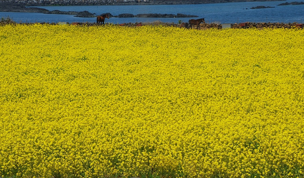 세화리 밭담 너머 위미리 동백숲에 논짓물 유채밭에