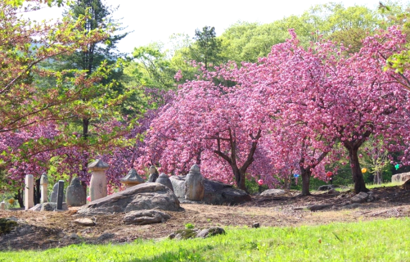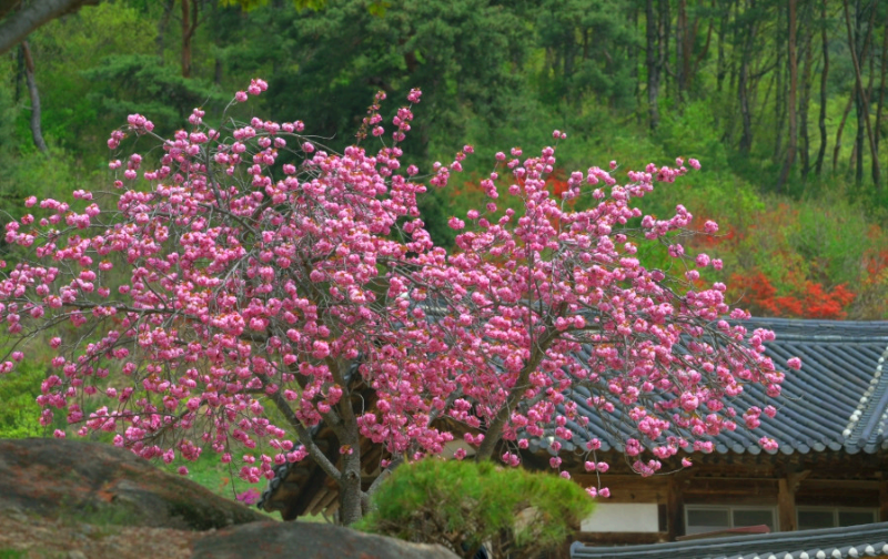 겹벚꽃의 명소로는 순천 선암사와 서산의 개심사가 으뜸이다.