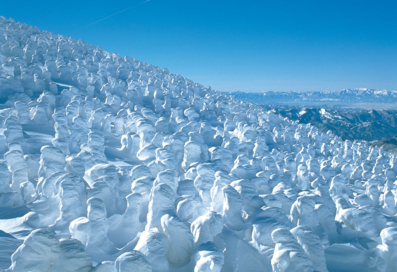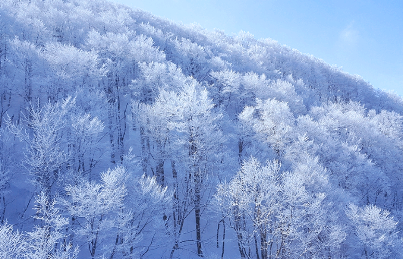 ‘수빙(樹氷)’은 차가운 안개가 바람에 날려와 나무에 붙어 굳어진 모습인데