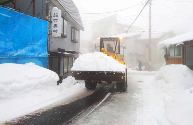 갓산 시즈 온천 마을은 겨울철 적설량이 6m를 넘는다.
