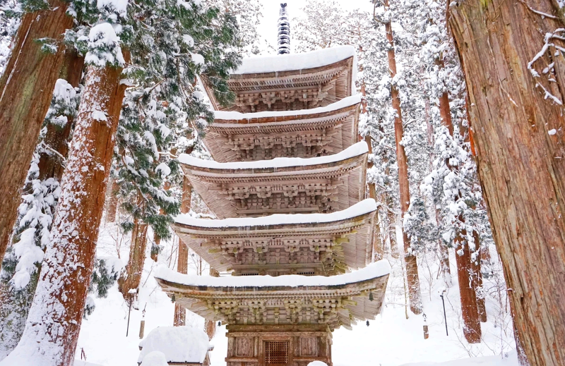 자오수빙(藏王樹氷) 야마데라(山寺) 고쥬노토(五重塔)