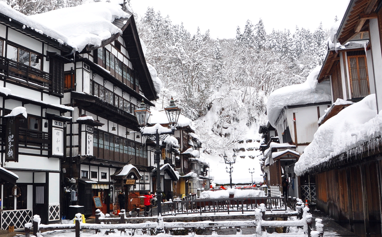 # 고풍스런 긴잔 온천마을의 아름다운 설경