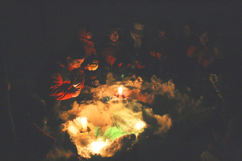밤이면 양초에 불을 밝혀 오렌지색 불빛이 새어 나오는 풍경이 인상적이다.