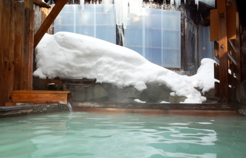 쏟아지는 눈을 맞으며 탕치 온천에 앉아 있는 것만으로도
