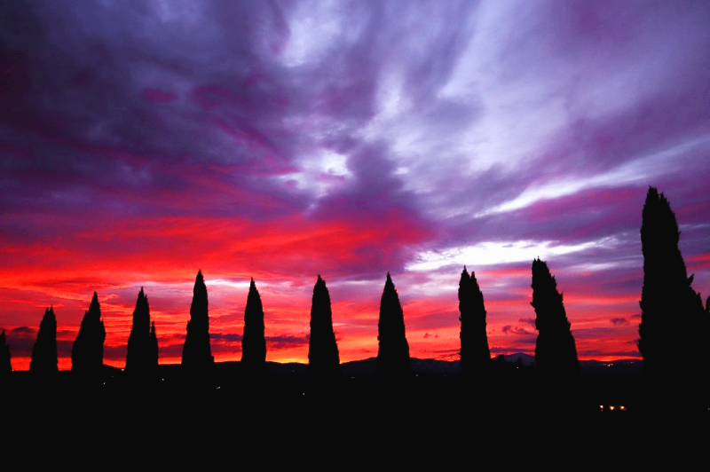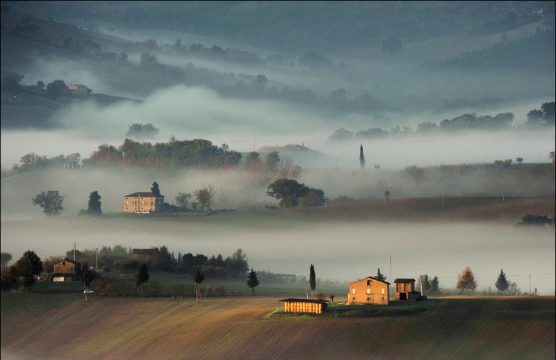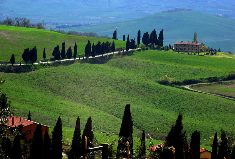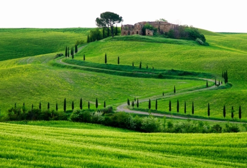 이태리 중부 토스카나 지역은 끝없이 펼쳐지는 구릉지의 전원풍경이 계절에 따라 변화무쌍하고 아침 안개과 저녁노을이 어우러져 날마다 새로운 감동을 펼쳐낸다. 원추형에 가까운 낮은 언덕 위에는 성주의 거주지가 있고 그곳으로 가는 사이프러스 나무가 늘어선 길은 평화롭기 그지없다. 이 풍경의 독특한 아름다움은 많은 예술가들에게 영감을 주었다.
