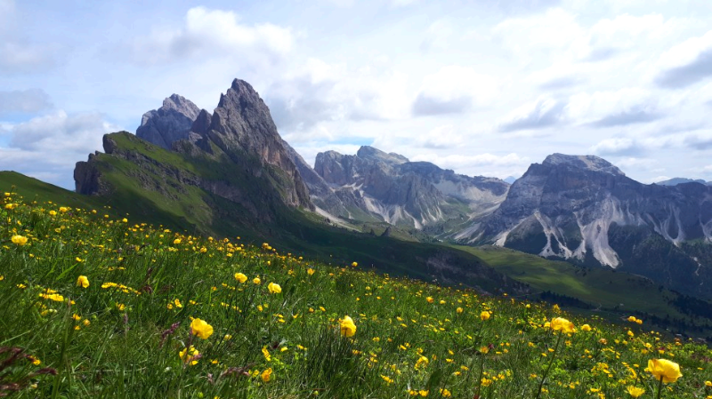 특히 돌로미티는 산악 트레킹 코스가 아니라 누구나 즐길 수 있는 초원과 야생화,