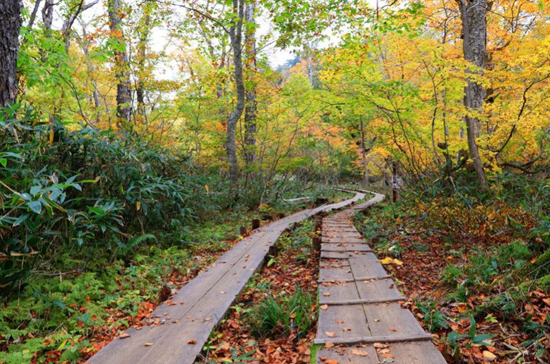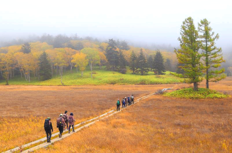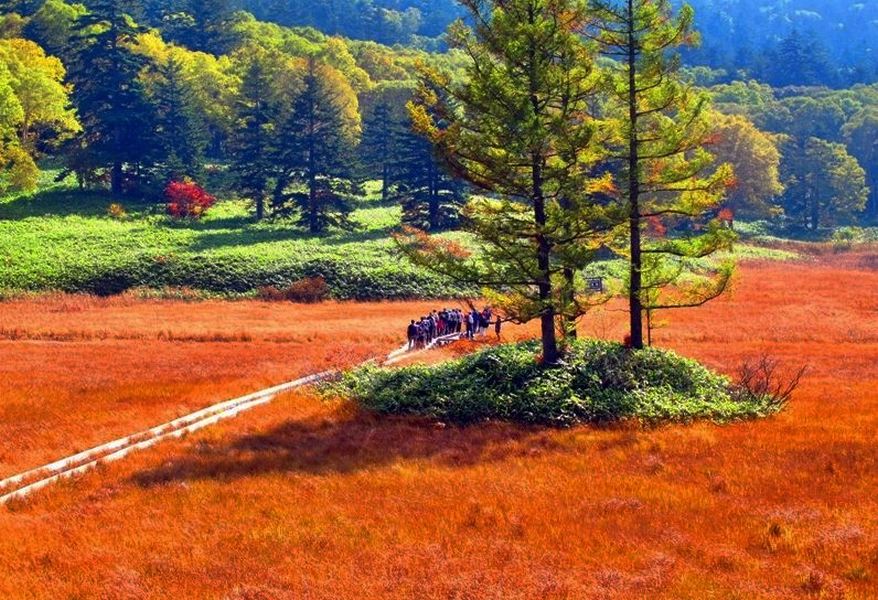 ▶일본 최고의 고산습지 센조가하라 단풍길 트레킹 (유타키 폭포-아키누마) 2시간