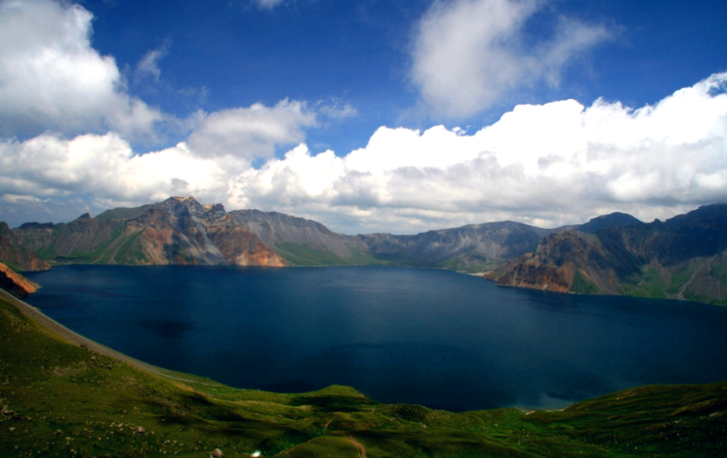 겨레의 신화가 숨 쉬는 하늘 호수 천지가 있습니다.