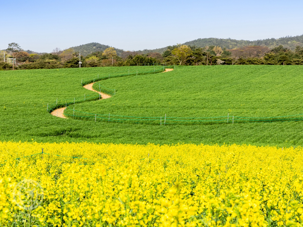4월 말. 푸른 청보리와 유채가 어우려져 바람에