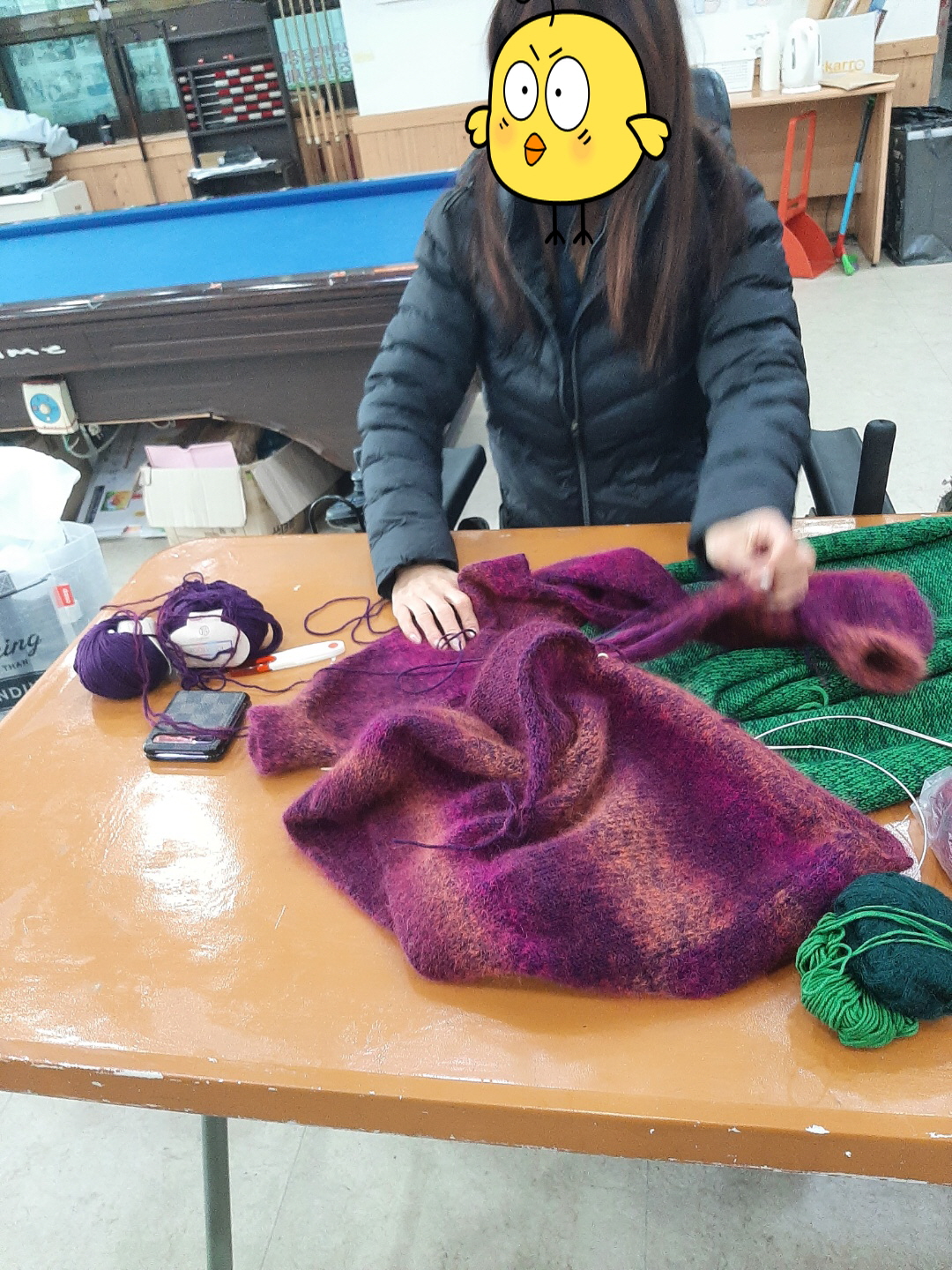 초겨울 직업훈련 및 자기계발 사업으로 겨울 옷을 뜨는 10회 시간 마다 뜨기가 두려워 하는 사람도 있어지만 뜨개교실 시간은 뜨개질로 사람들과의 협력 하는게 좋은시간 됨을 알게 되었다고 합니다. ~. 목도리/ 조끼/ 가디건 /완성 하는 시간 모두가 박수 치며 각자의 솜씨에 감탄 하며 타인의 작품을 보면서 만족도가 높은 시간이 되었습니다.~