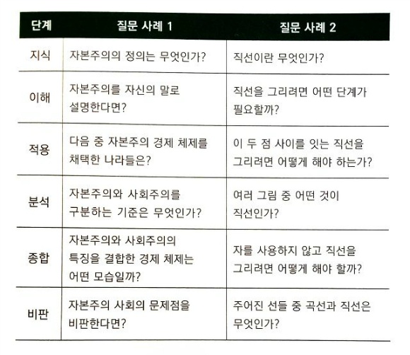 요약하라, 결정하라, 골라라, 정의하라, 조직하라, 비교하라 등 |