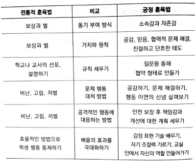 전통적 훈육법과 긍정 훈육법의 비교 (p166)