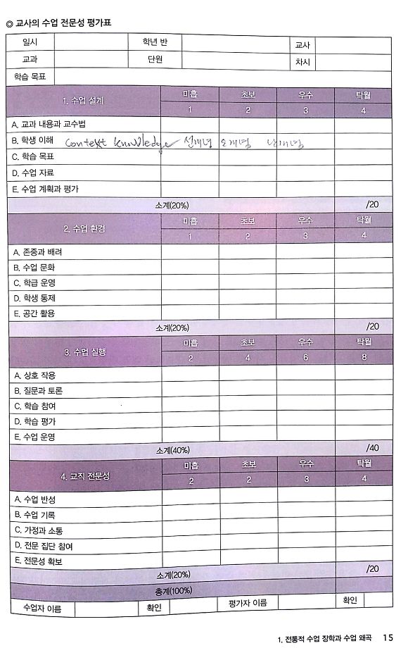 2) 잘 가르치는 교사의 수업