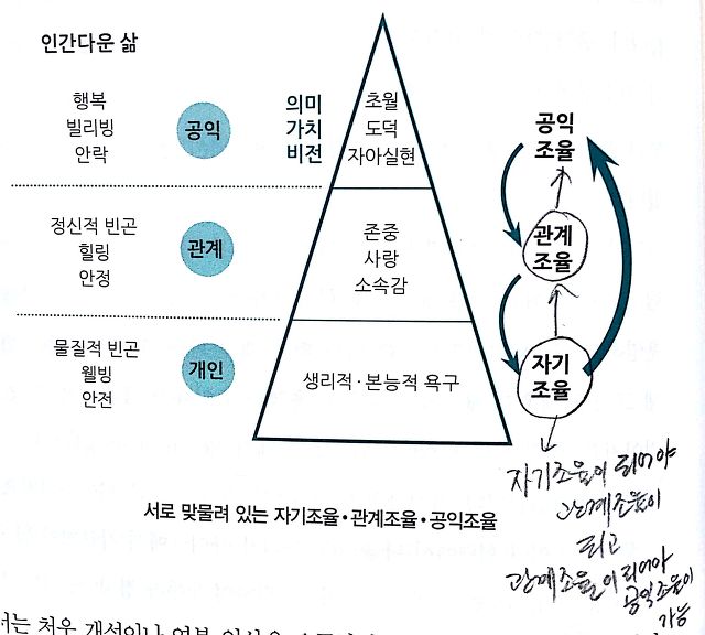 우리가 더불어 살아가려면 동물적인 본능인 이기심과 공격성, 성적 충동 등을 억제할 수 있는 능력이 필요합니다. 인간은 원초적으로 불안한 존재이기에 그 불안감, 공포감을 스스로 통제할 수 있는 감정 조절력도 발휘해야 합니다. 각종 욕구와 욕정을 잠시마나 미룰 수 있어야 합니다. 즉 자기조율을 할 수 있어야 합니다. 그러니 성공하는 사람의 핵심 능력이라는 관계조율의 전제 조건은 자기조율 능력이기도 합니다.