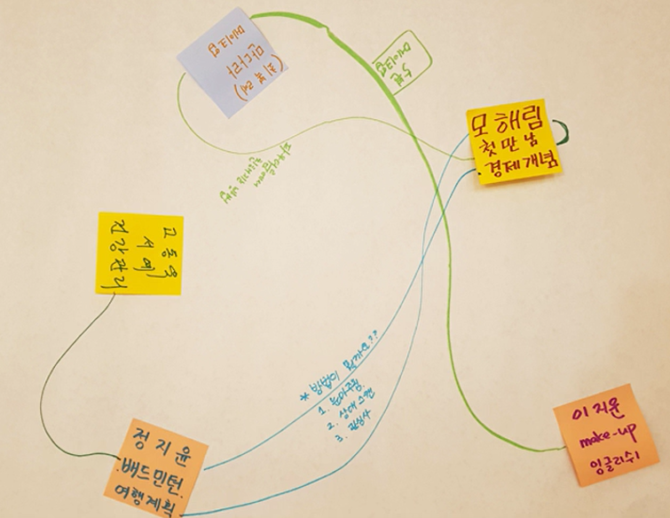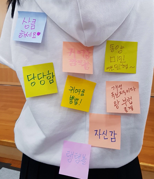 * 붙이기가 끝나면 포스티잇 몇장을 뽑아서 누구인지 맞춰보게 할 수도 있다.