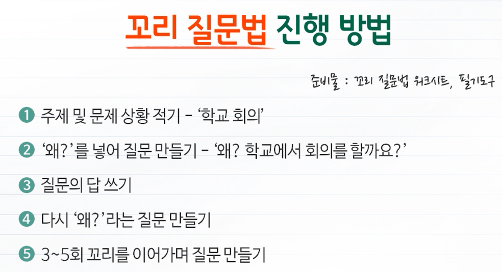 꼬리 질문법을 사용하면 문제해결의 방향과 방법이 근원적인 해결방안으로 전환하게 된다.