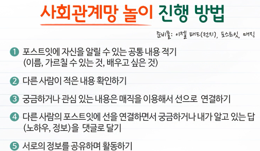 * 사회관계망 놀이는 우리가 서로 연결되어 있는 존재라는 것을 알릴 때 사용할 수 있다.