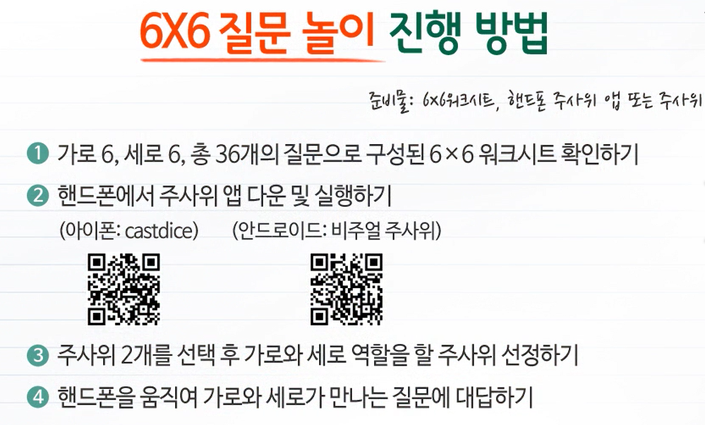 * 잘 모르는 사람들과 처음 시작할 때 해보면 좋다. 그러면 내가 보는 나와 남들이 보는 내가 어떻게 다른지도 확인할 수 있다.