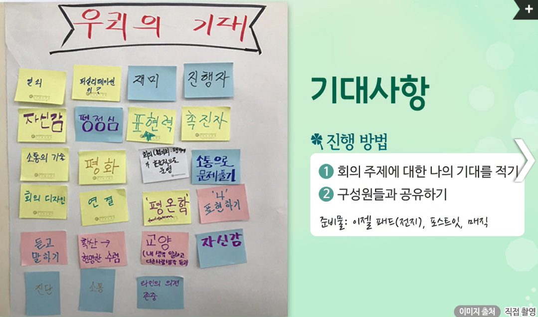 기대 사항을 함께 나누는 것은 협의 과정에 기대를 갖고 참여할 수 있는 동기를 부여한다.