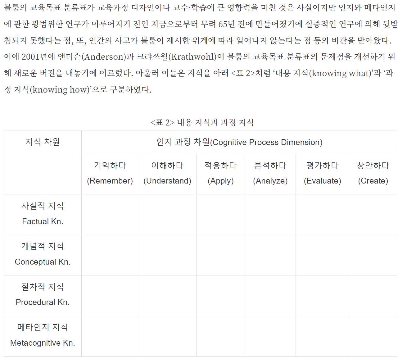 1990년대 후반, 블룸의 교육목표 분류학은 **앤더슨(Lorin W. Anderson)**과 **크래스월드(David R. Krathwohl)**에 의해 현대적으로 개정되었습니다. 이 개정판에서는 **종합(Synthesis)**과 **평가(Evaluation)**의 순서가 바뀌었고, 각 단계는 명사형이 아닌 동사형으로 수정되었습니다. 이를 통해 각 단계가 보다 구체적으로 행동을 표현하게 되었으며, 학습자들이 실제로 무엇을 할 수 있는지를 강조했습니다.